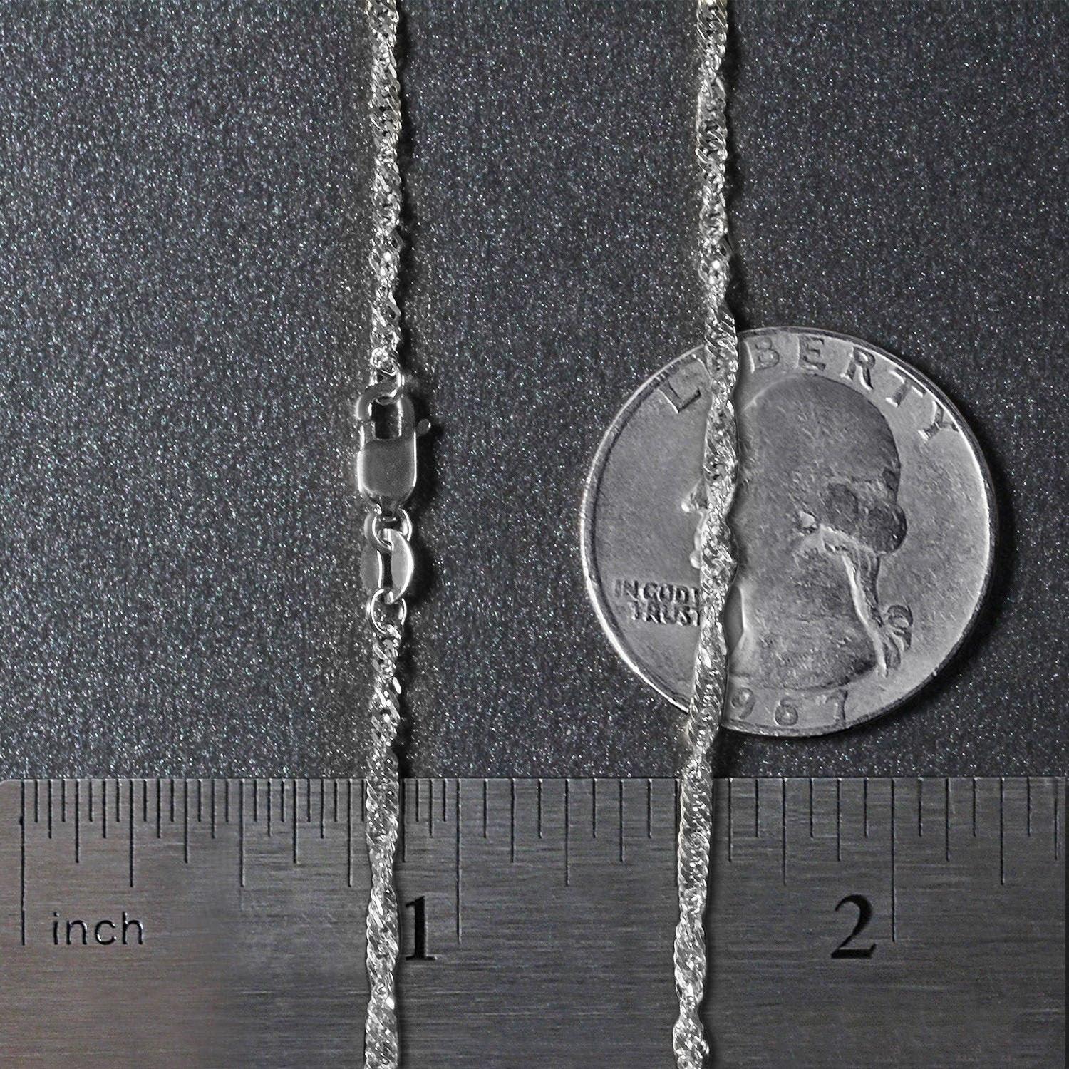 This Singapore chain comes in 14k white gold and has a width of 1.80 millimeters.