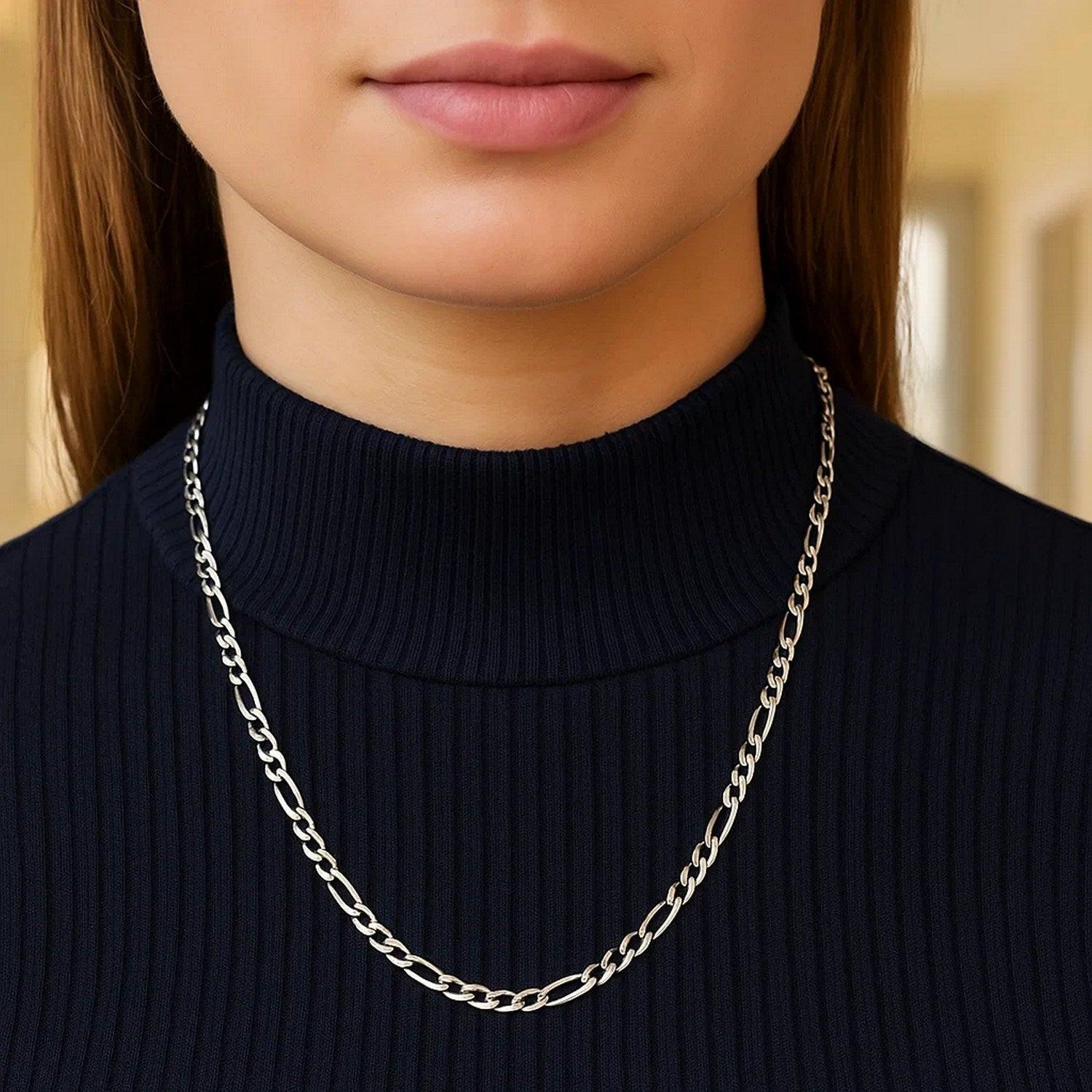 14k White Gold Solid Figaro Chain (3.80 mm)