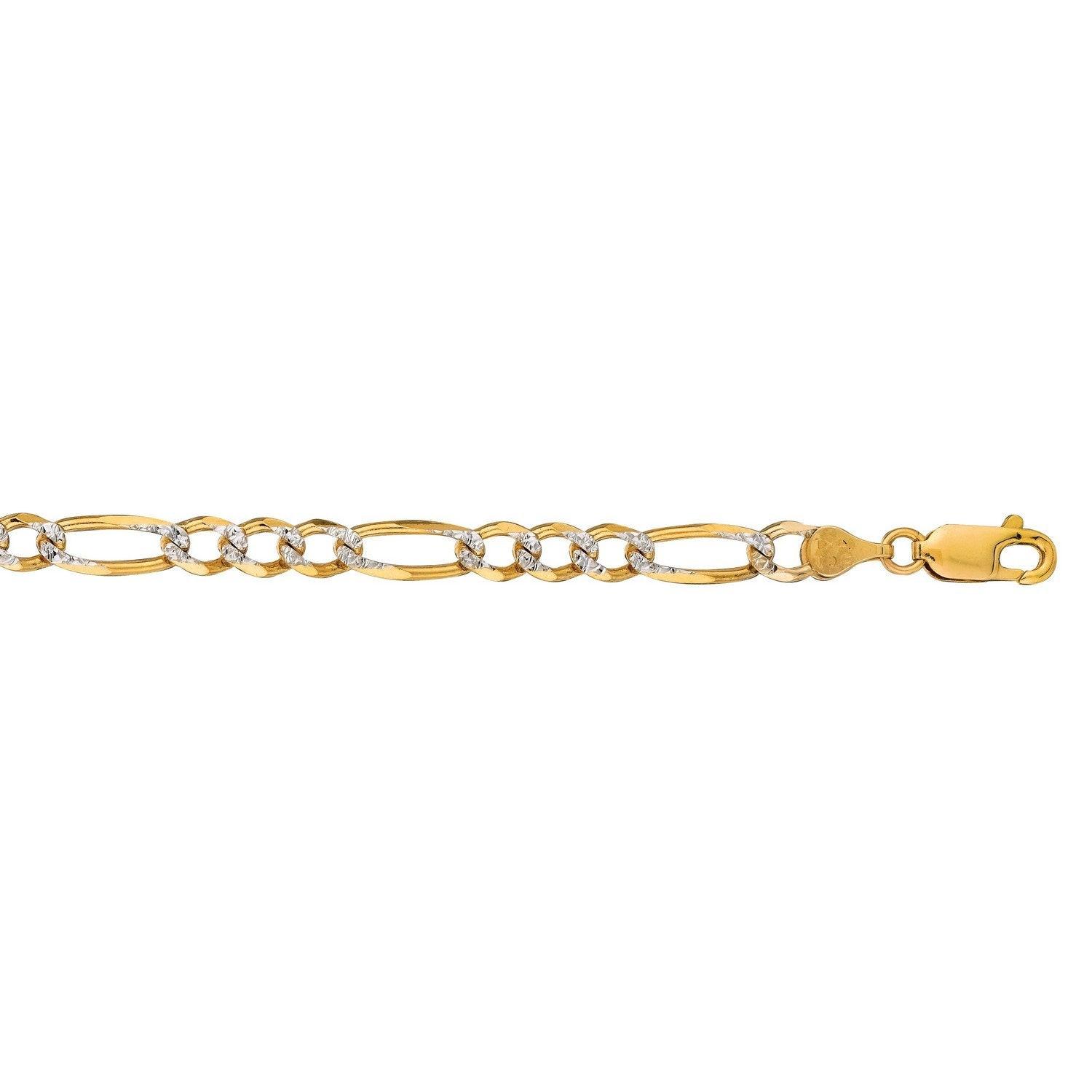 14K Yellow Gold Solid Pave Figaro Chain (7.00 mm)