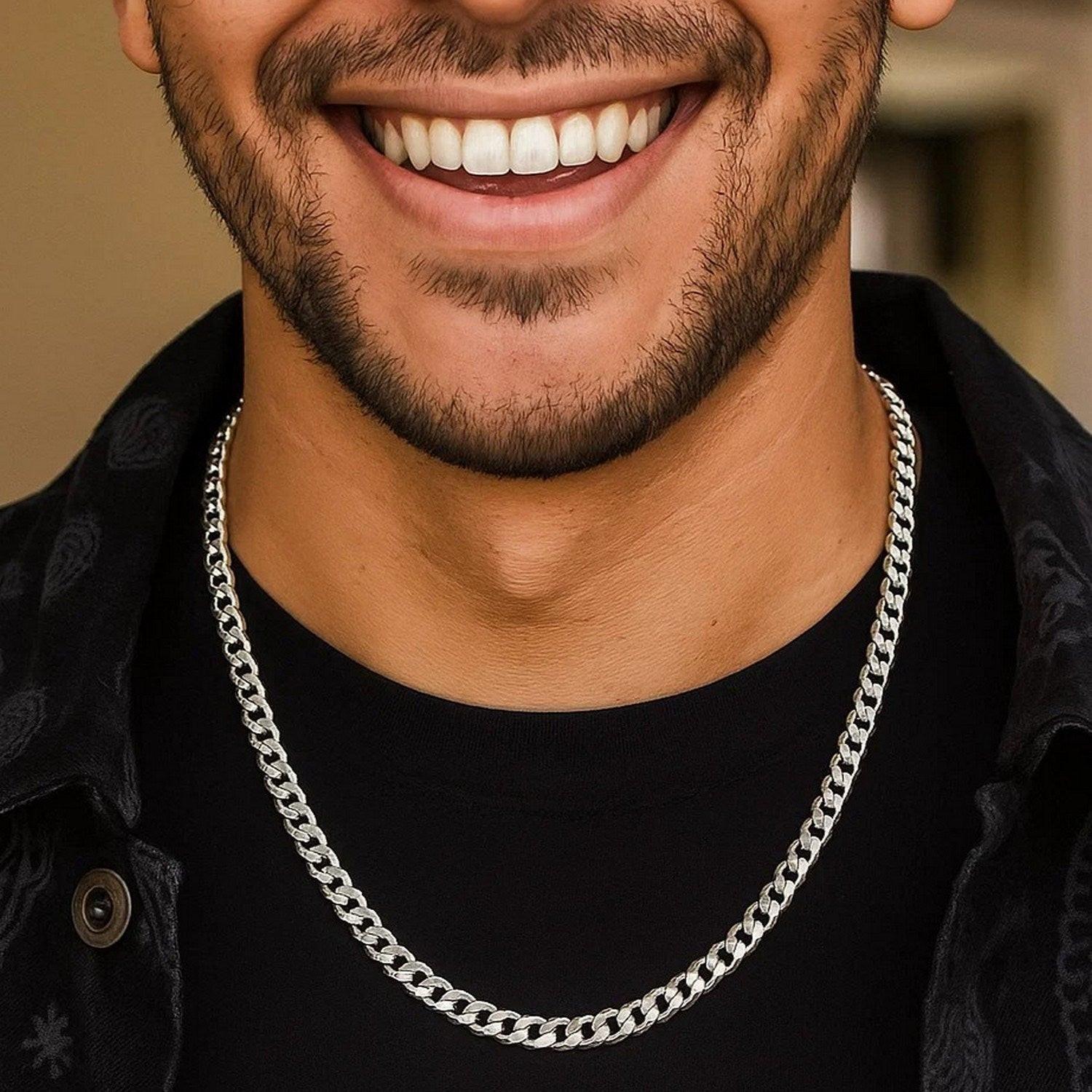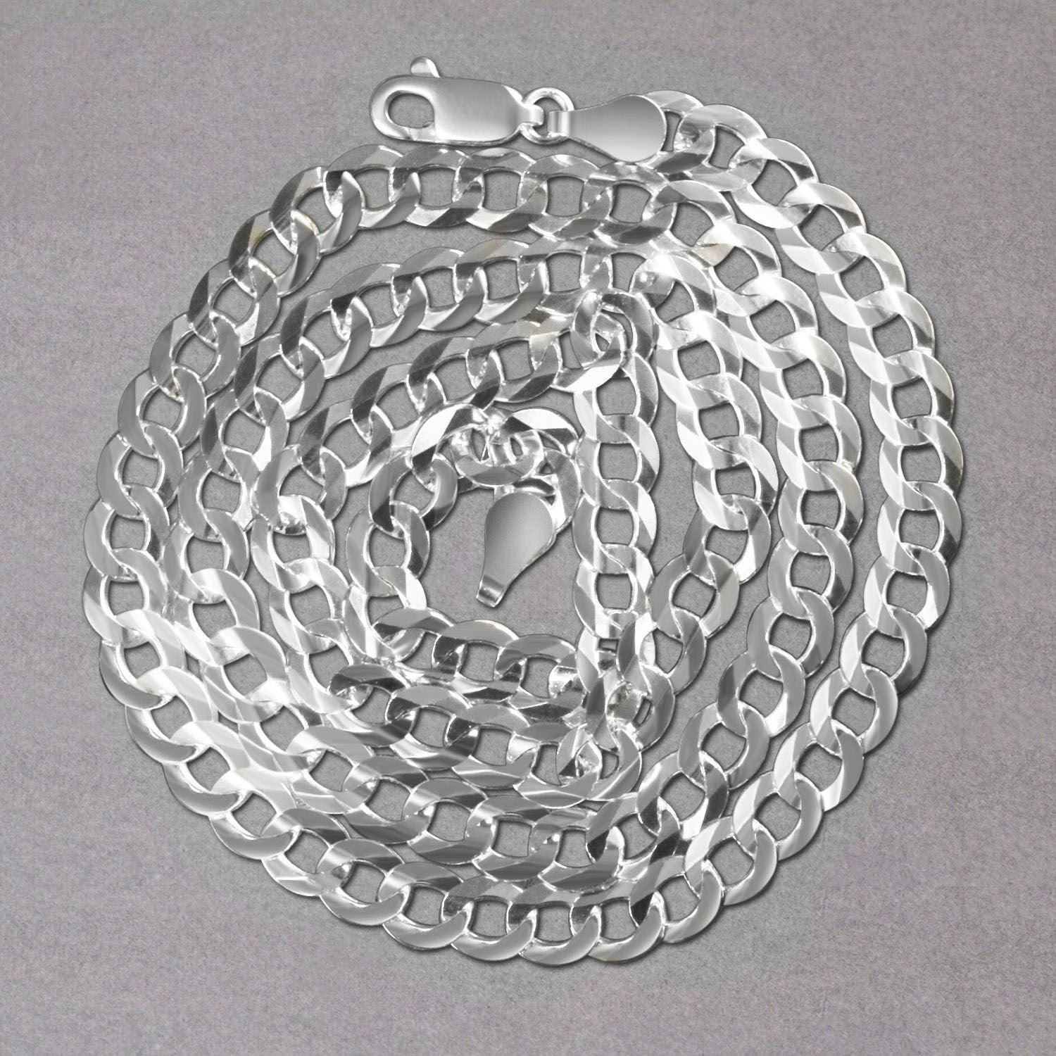This classic rhodium plated chain is crafted in gleaming sterling silver and has a width of 5.50 millimeters featuring a curb chain design is secured with a lobster clasp.