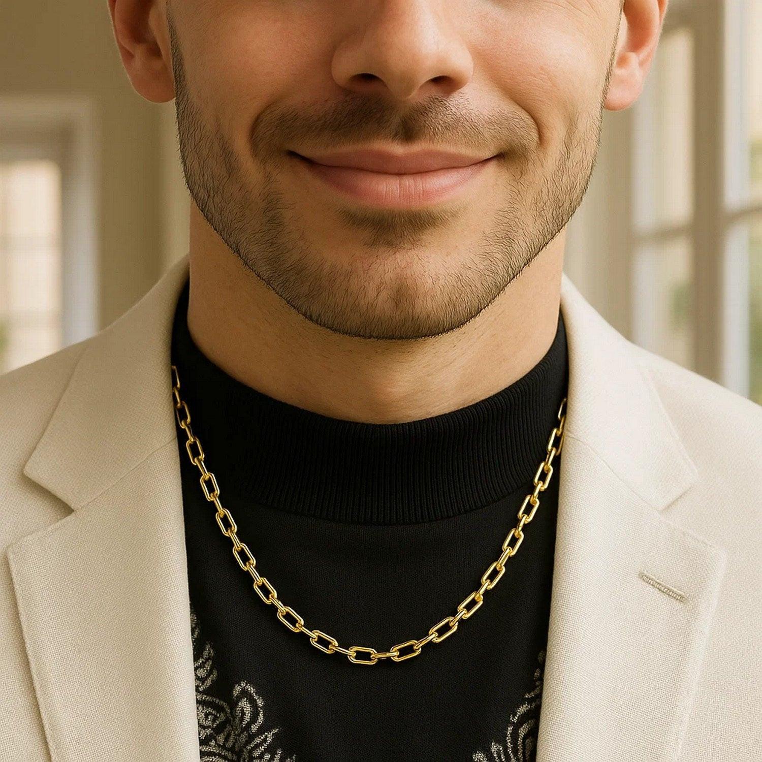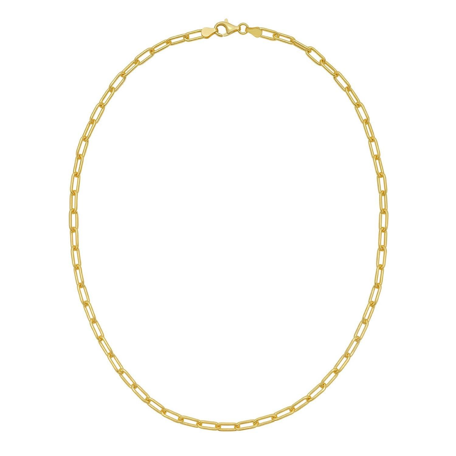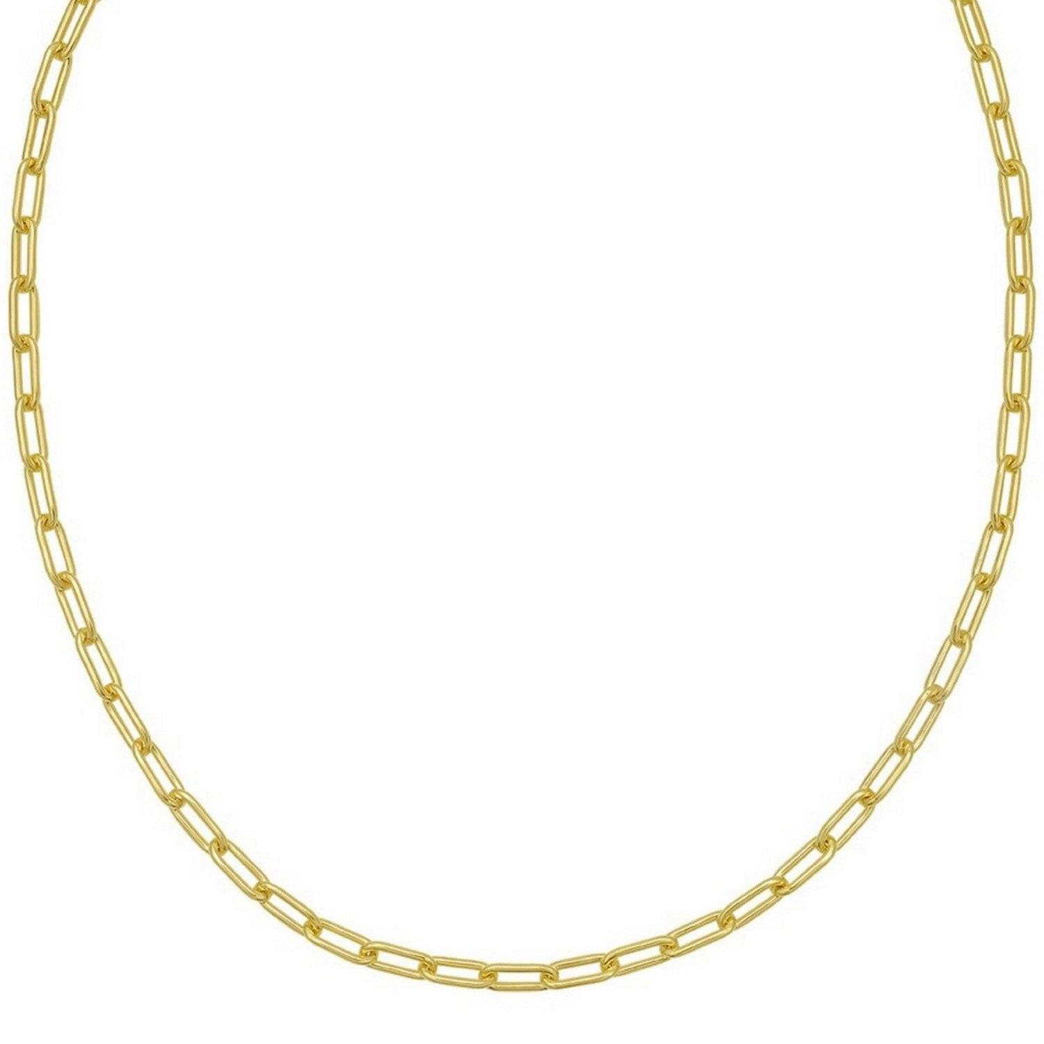 Crafted in sterling silver with a rich yellow gold plating, this 5.20 mm round link paperclip chain features bold, rounded elongated links that create a modern, open silhouette and radiant shine, making it a striking accessory perfect for wearing on its own or pairing with a standout pendant.
