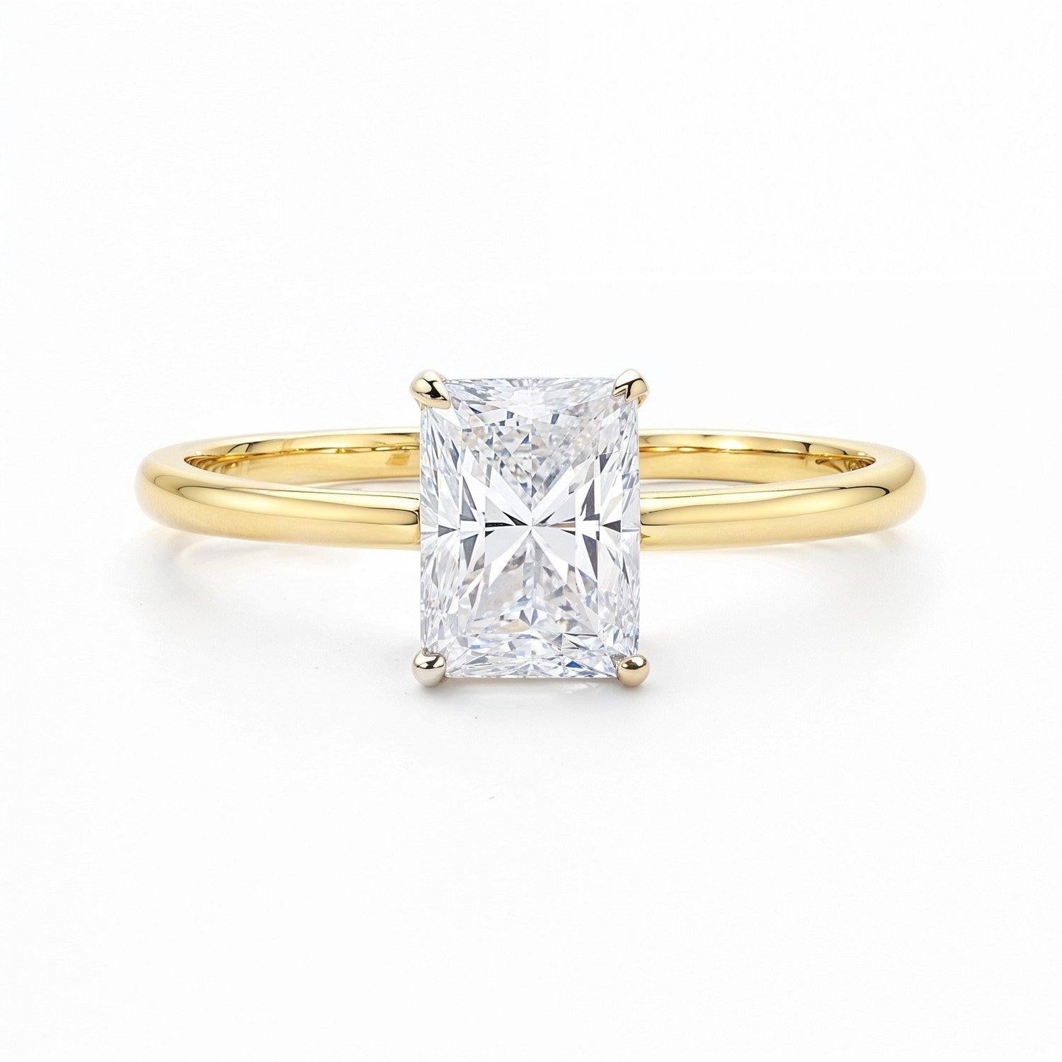 1.50Ct Radiant Lab Grown IGI G/VS1 Diamond Ring in 14K Yellow Gold