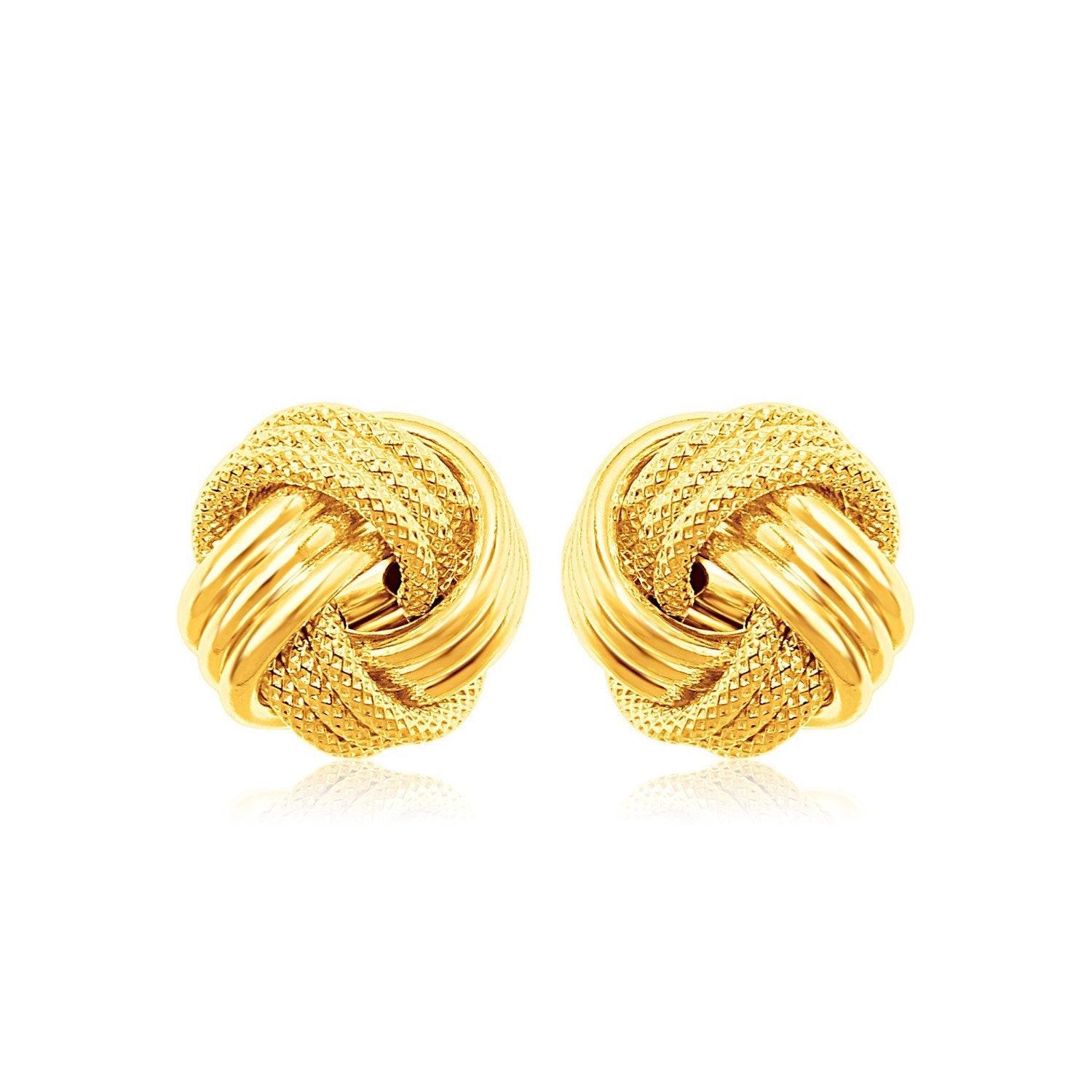 10k Yellow Gold Love Knot with Ridge Texture Earrings