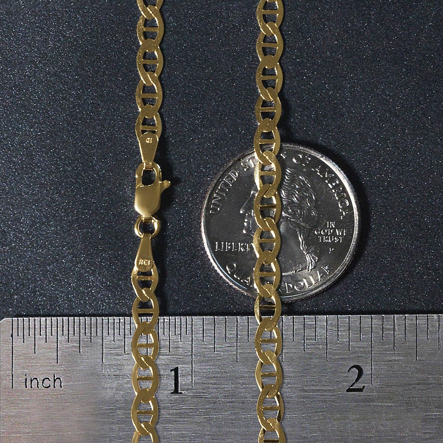This mariner link chain comes in 10k yellow gold and has a width of 4.5 millimeters.