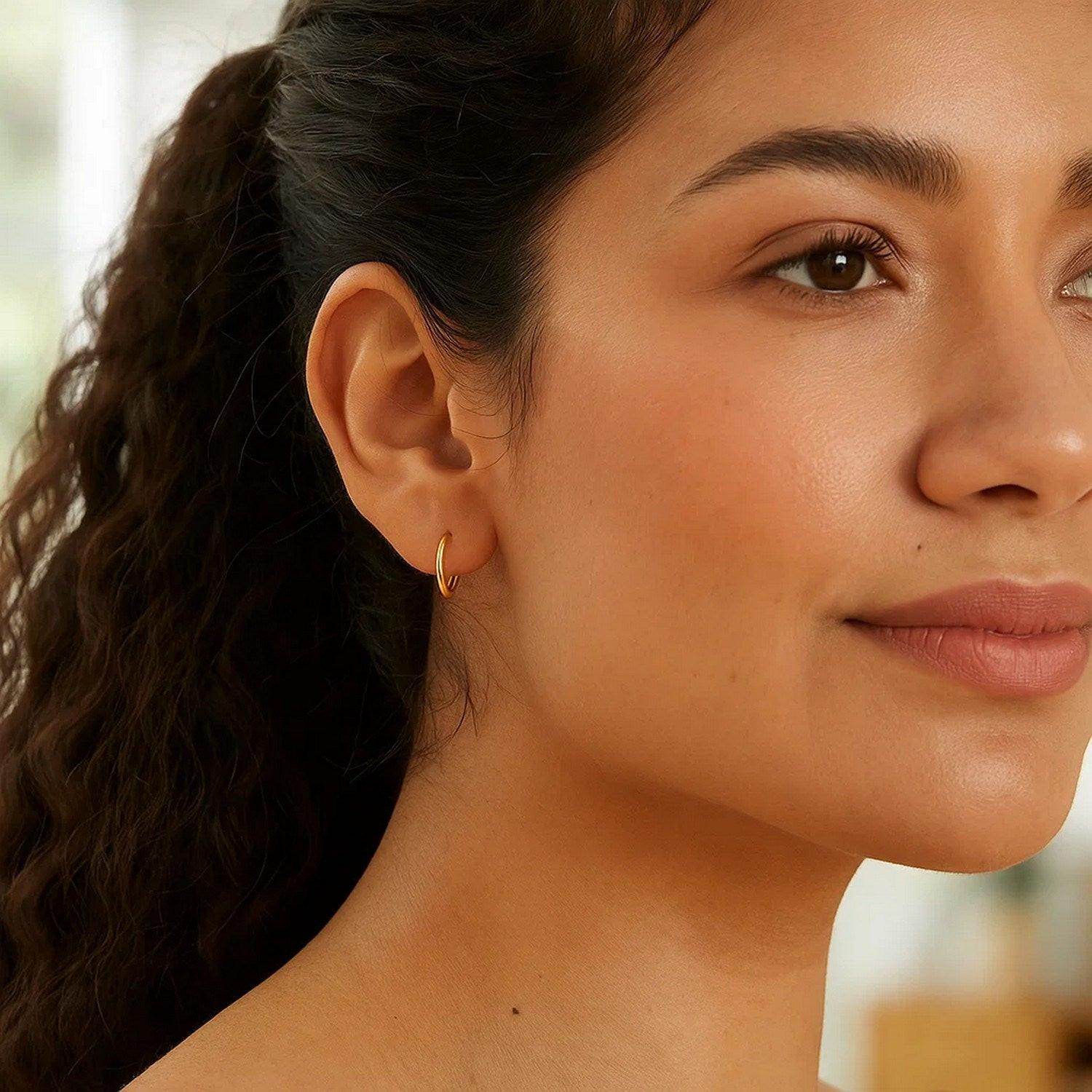 Chic 10K yellow gold mini endless hoop earrings featuring a seamless circular design and polished finish. Lightweight and comfortable, these timeless hoops offer understated elegance, perfect for everyday wear or effortless layering with other earrings.