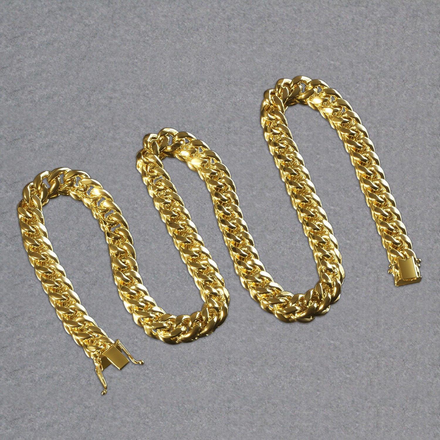 This semi solid Miami cuban chain comes in 10k yellow gold and has a width of 9.10 millimeters.