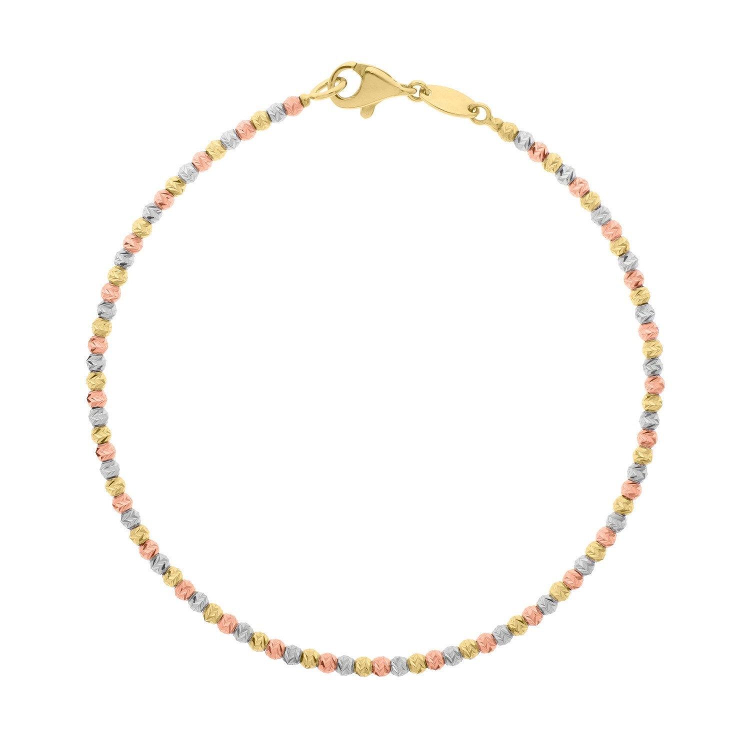 10K Yellow Gold Tricolor Diamond Cut Bead Bracelet
