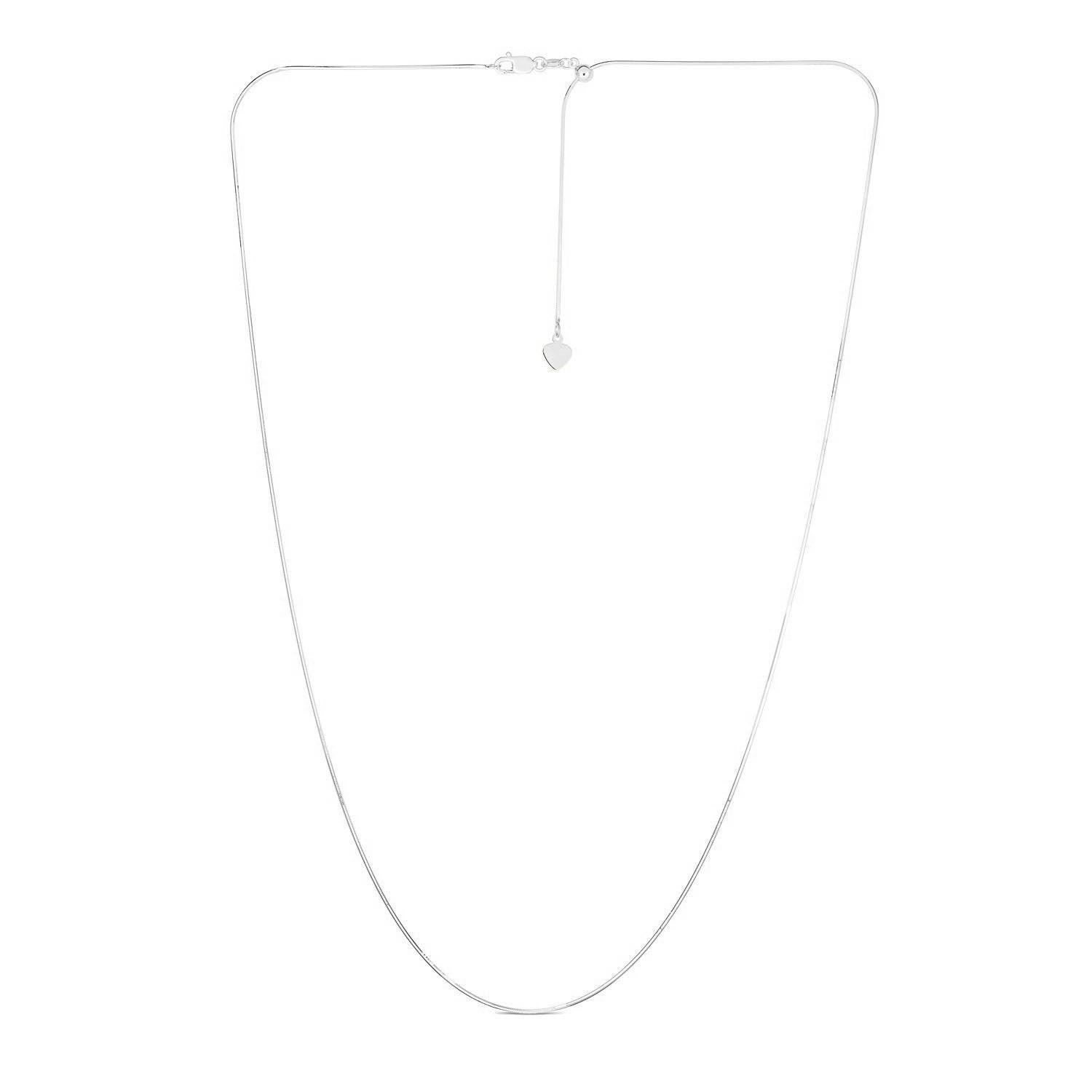 Crafted in 14k white gold, this adjustable snake chain measures a width of 0.80 millimeters and features a heart dangle accent. The chain is adjustable up to 22 inches and is fastened securely with a lobster clasp.