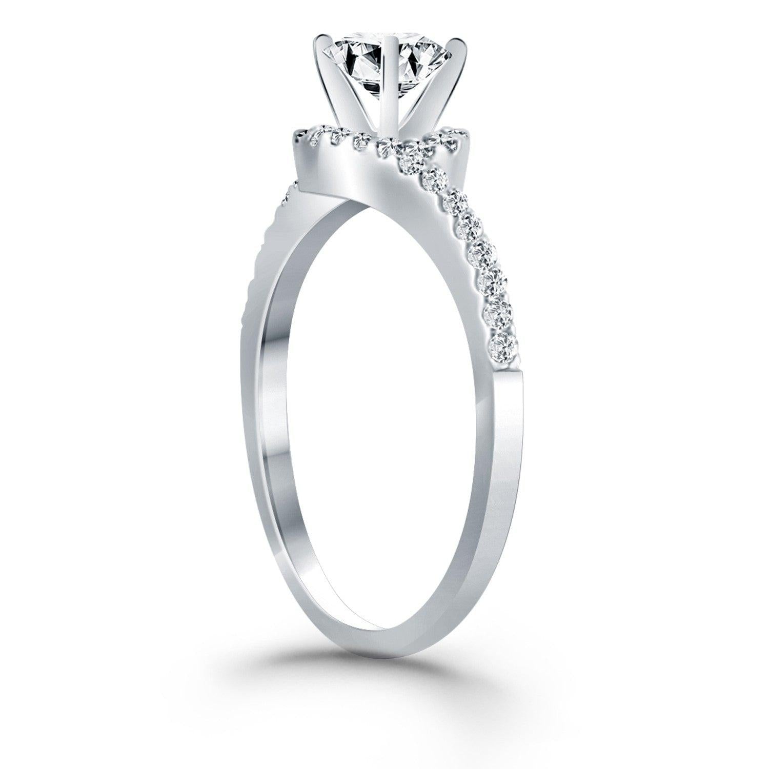 14k White Gold Bypass Swirl Diamond Halo Engagement Ring