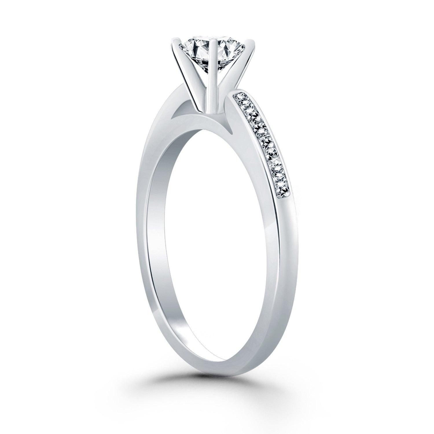 14k White Gold Diamond Channel Cathedral Engagement Ring