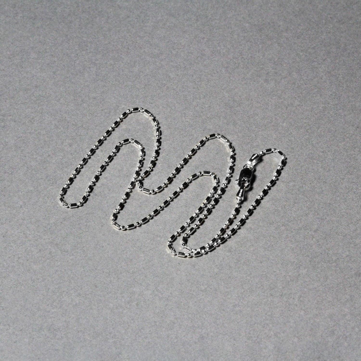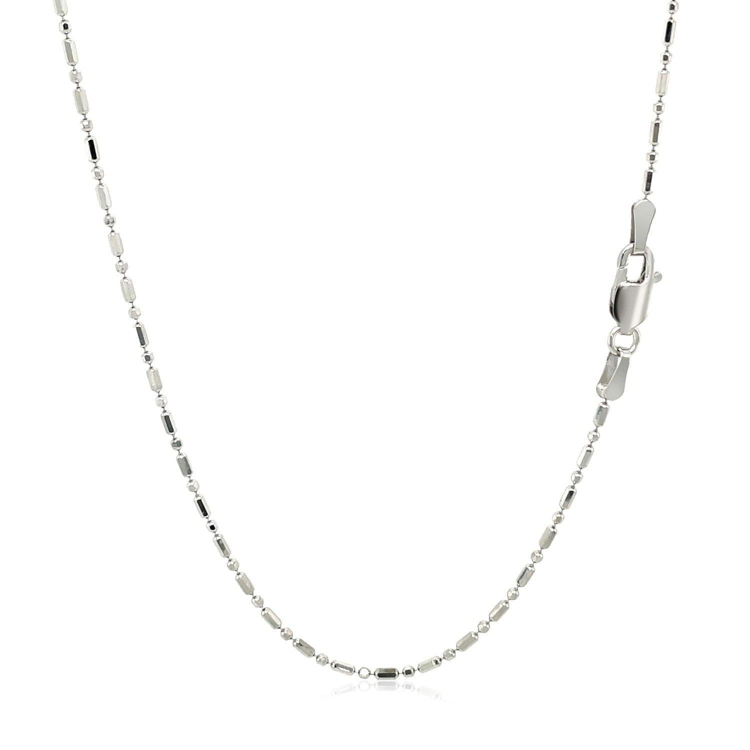 This diamond cut alternating bead chain comes in 14k white gold and has a width of 1.10 millimeters.