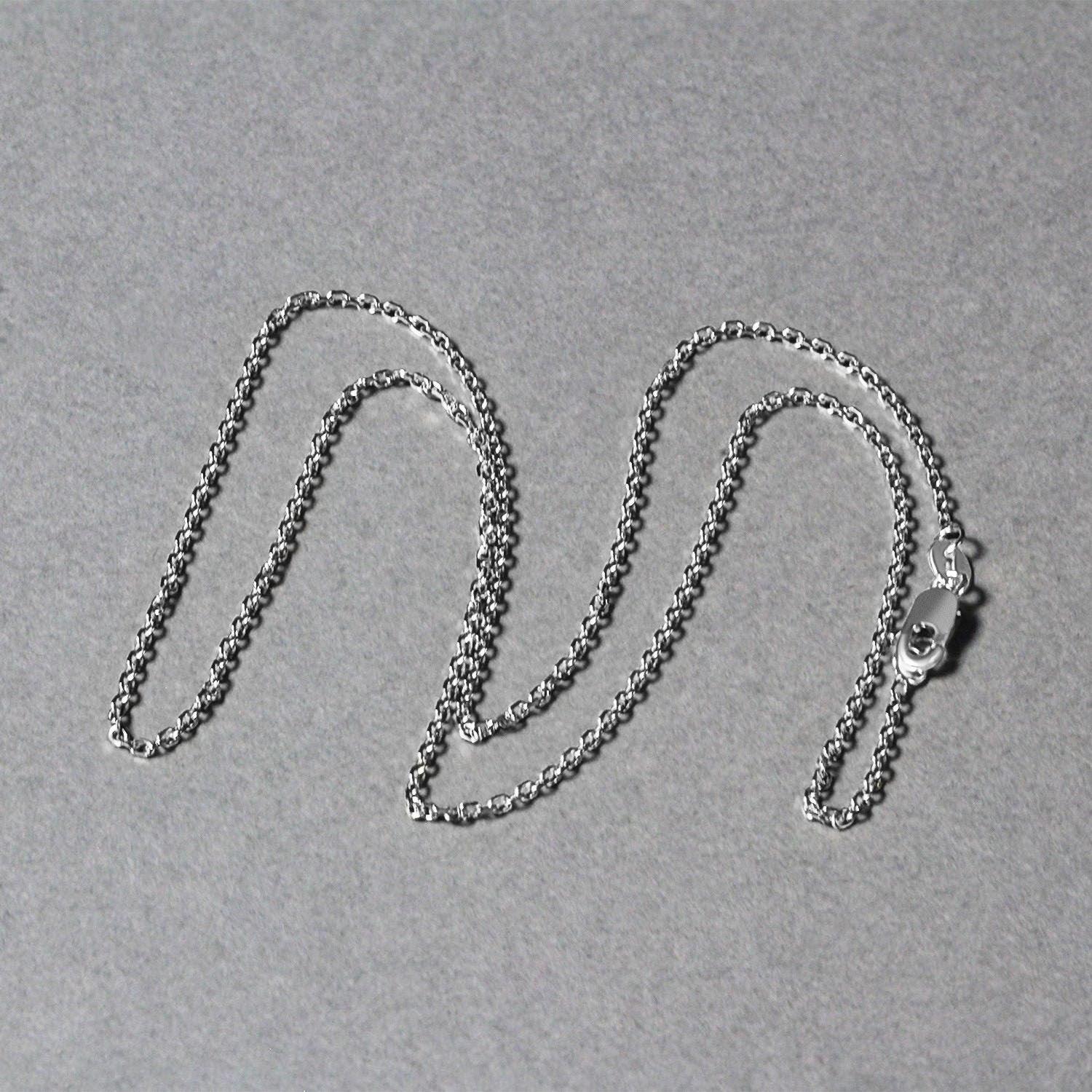 This diamond cut cable link chain comes in 14k white gold and has a width of 1.30 millimeters.