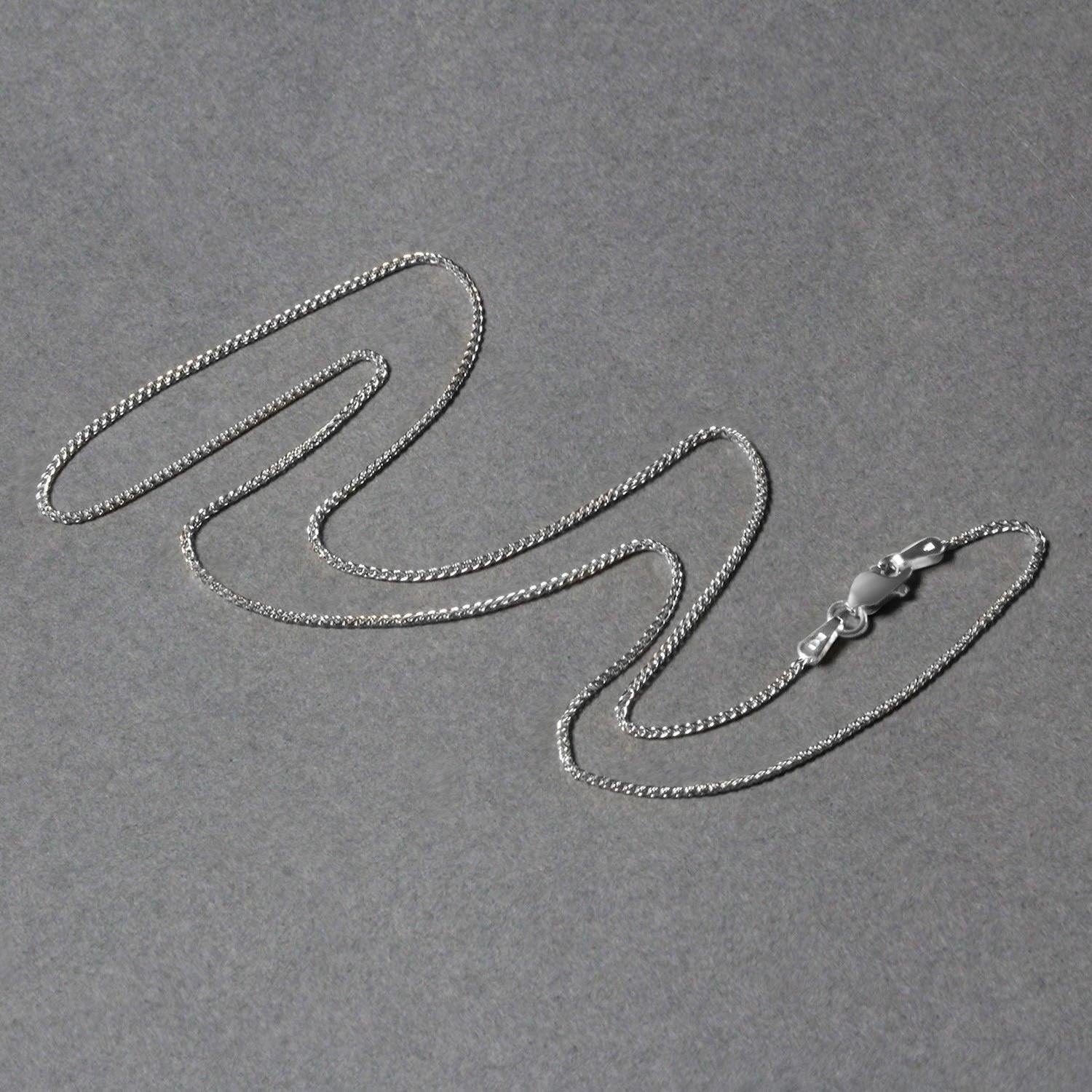 This diamond cut round wheat chain comes in 14k white gold and has a width of 1.00 millimeters.
