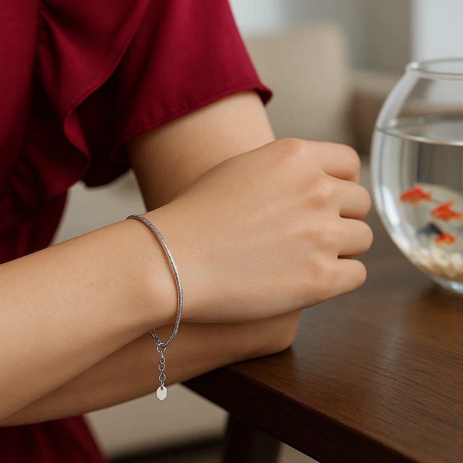Crafted in 14K white gold, this elegant 7 inches diamond cut stack bangle bracelet adds brilliance and texture to any look. Designed with a pear shaped lobster clasp for secure wear, it’s perfect for stacking or as a standalone statement piece.