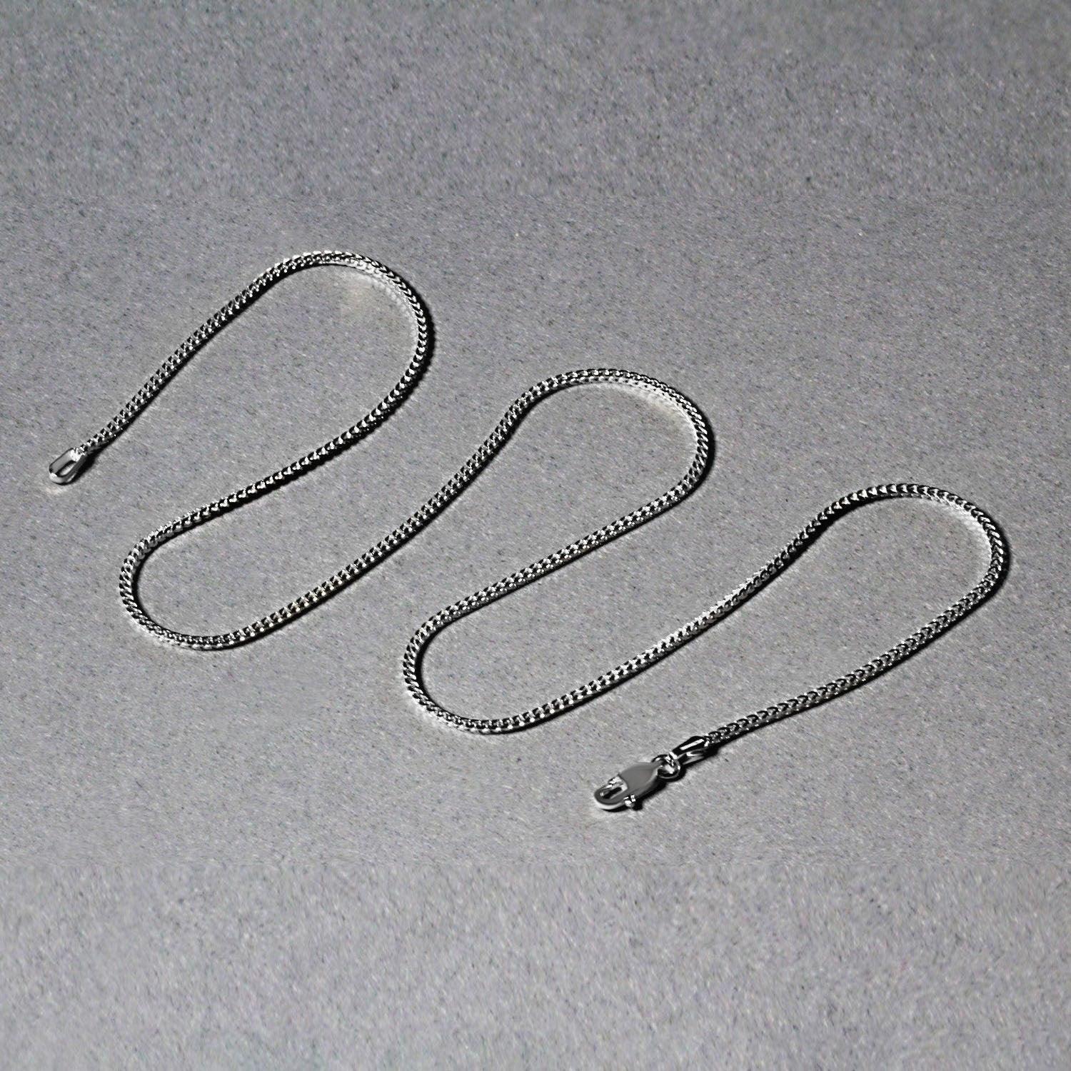 This franco chain comes in 14k white gold and has a width of 1.2 millimeters.