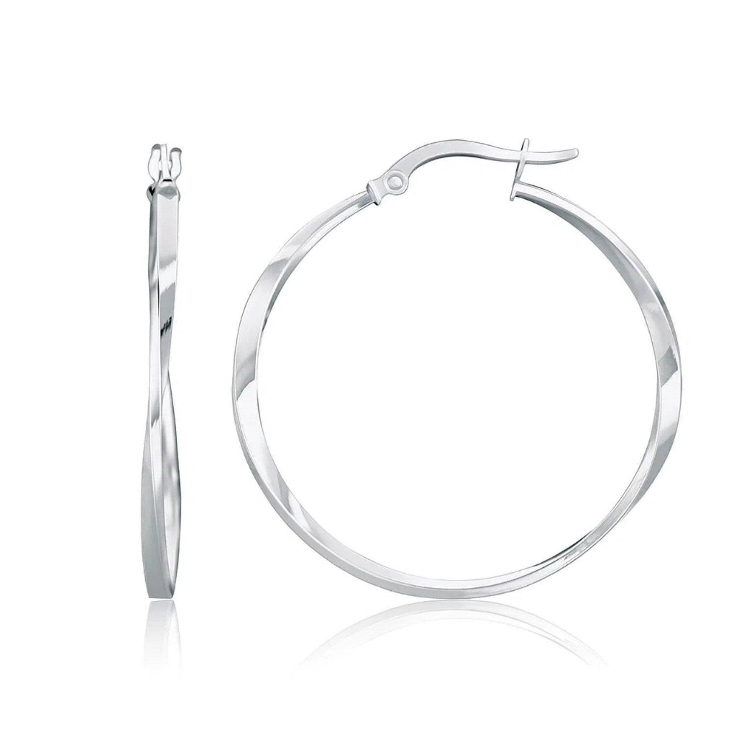 14k White Gold Mobius Twisted Hoop Earrings(1.5x50mm)