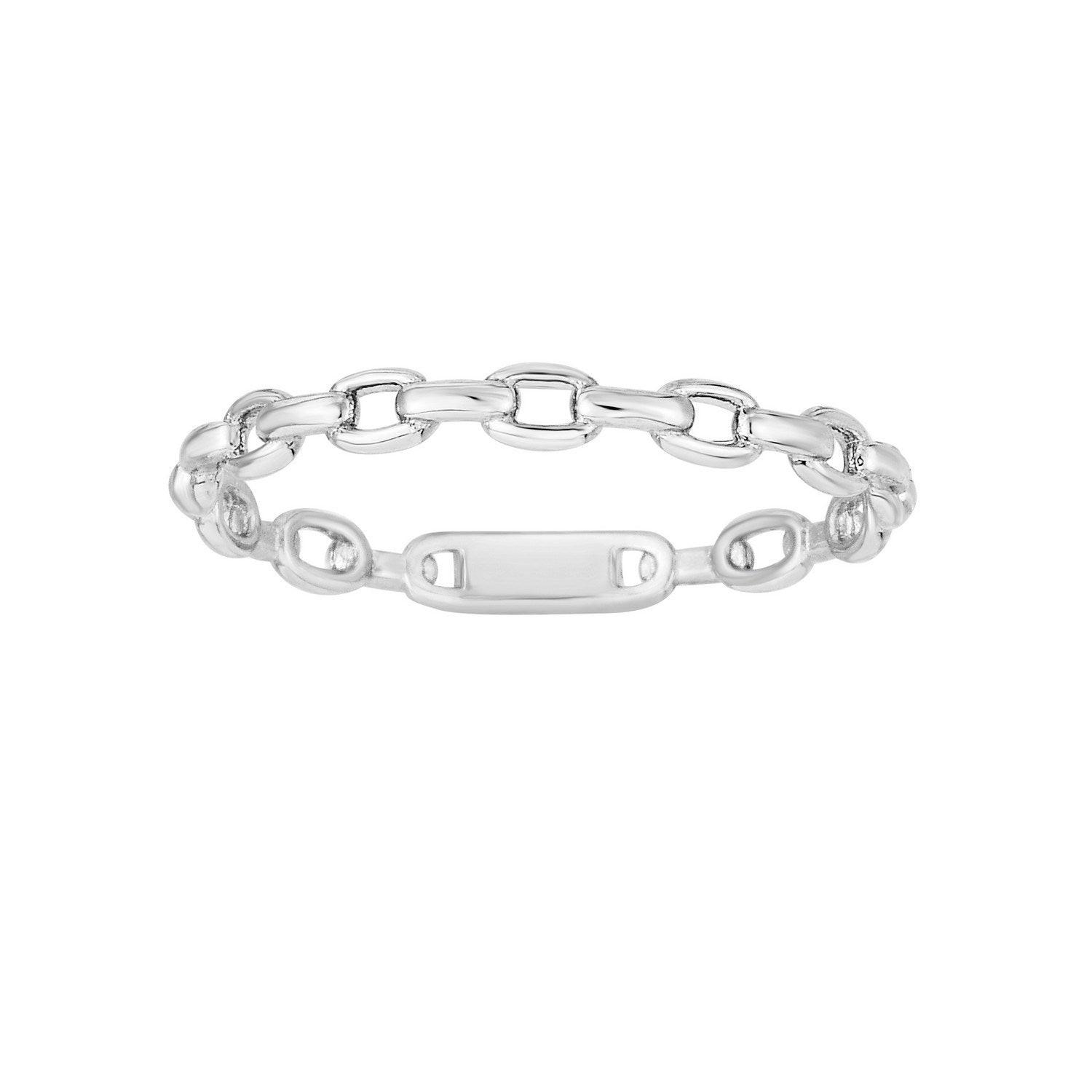 14K White Gold Oval Links Stackable Ring featuring polished oval link motifs crafted in solid 14K white gold. Its slim, contemporary design adds subtle texture and is perfect for stacking or wearing as a minimalist standalone piece.