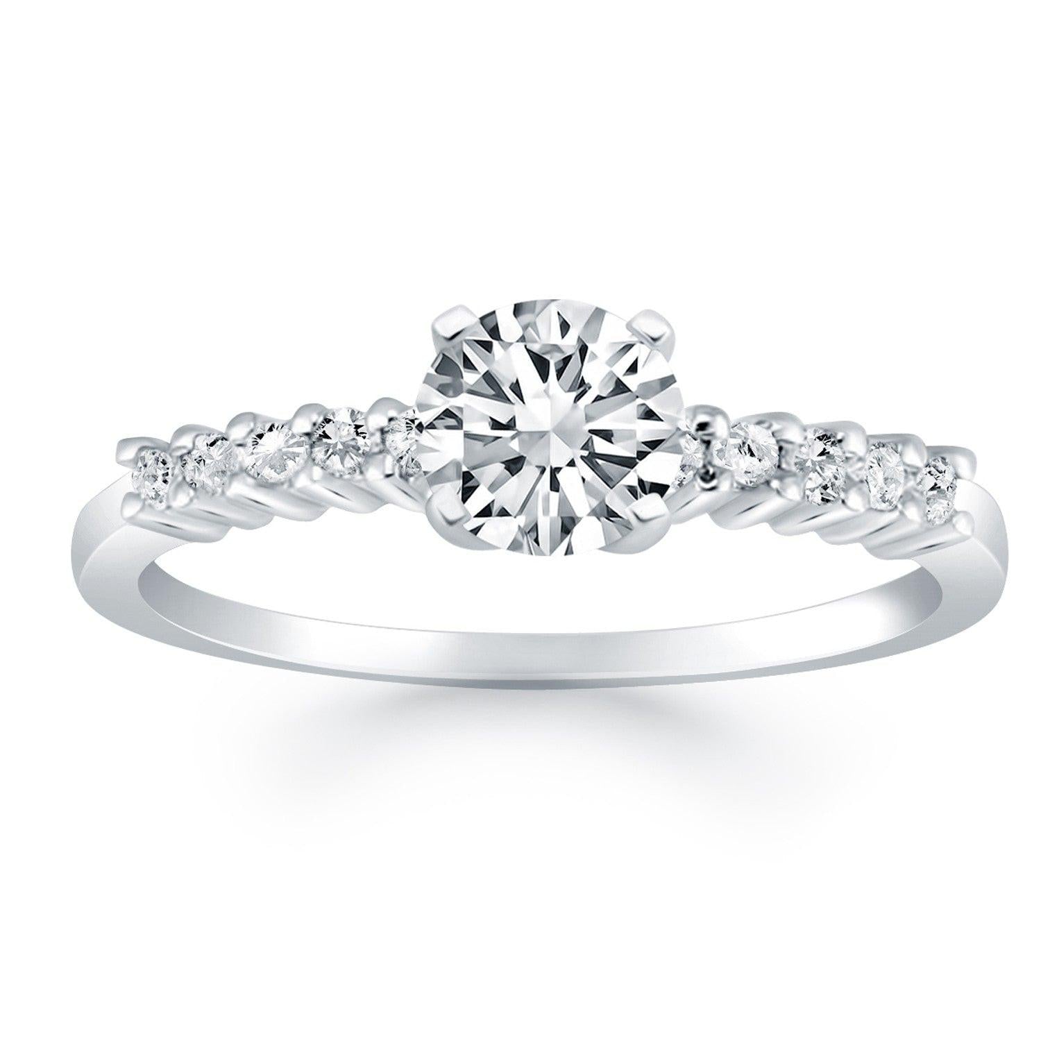14k White Gold Shared Prong Accent Diamond Engagement Ring