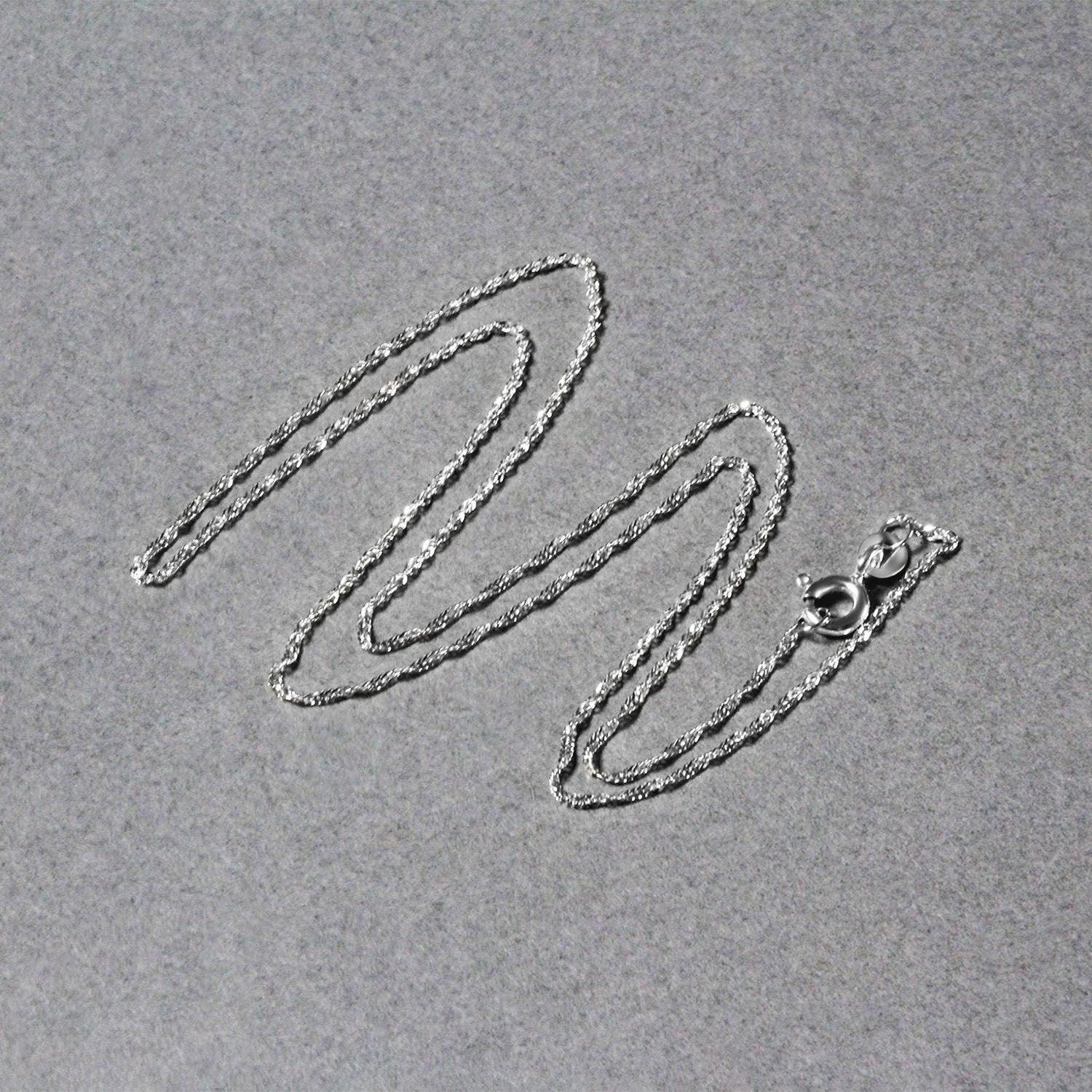 This Singapore chain comes in 14k white gold and has a width of 1.10 millimeters.