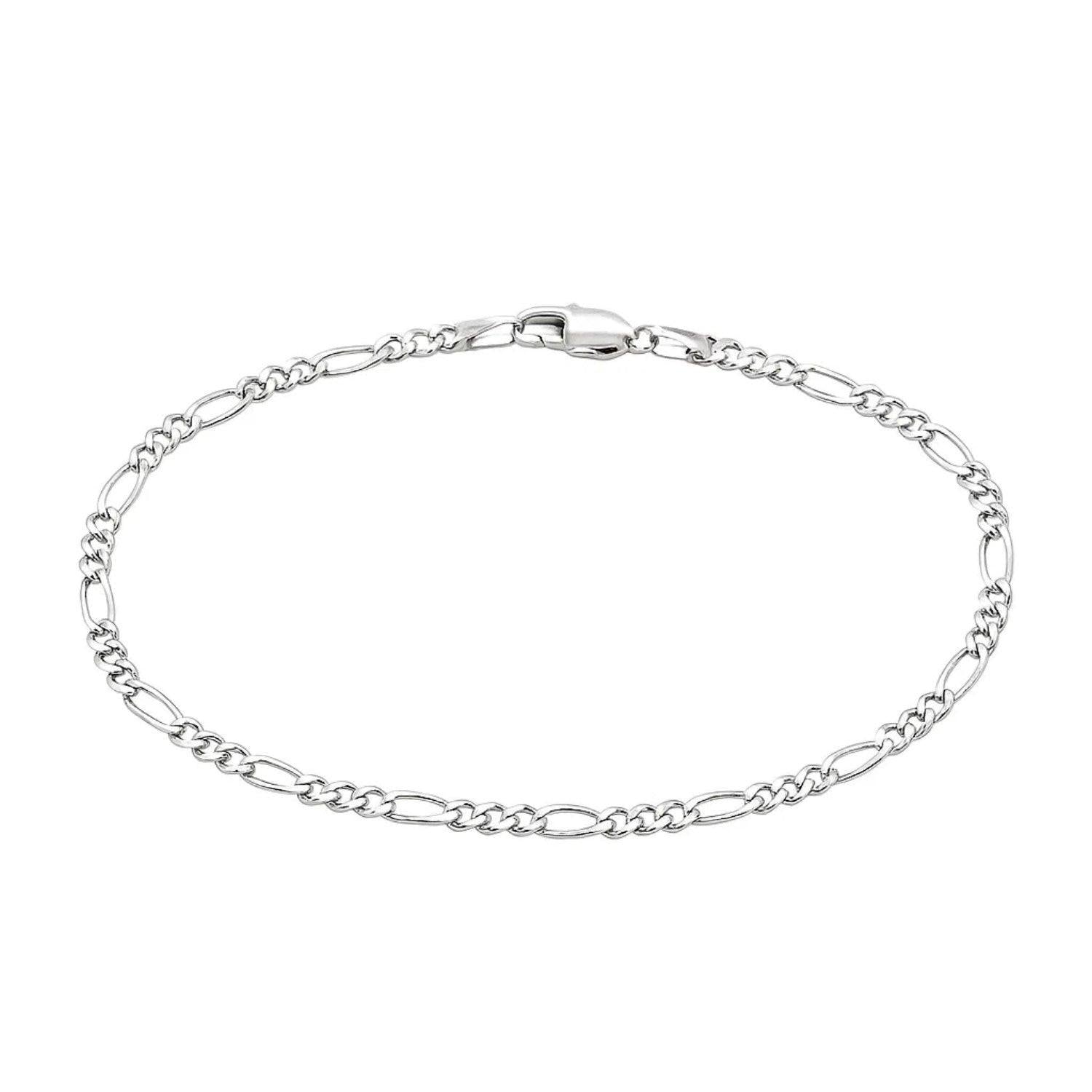 14k White Gold Solid Figaro Bracelet (2.60 mm)