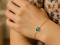 14K Yellow Gold Blue Topaz Heart Bracelet (1.50 mm)