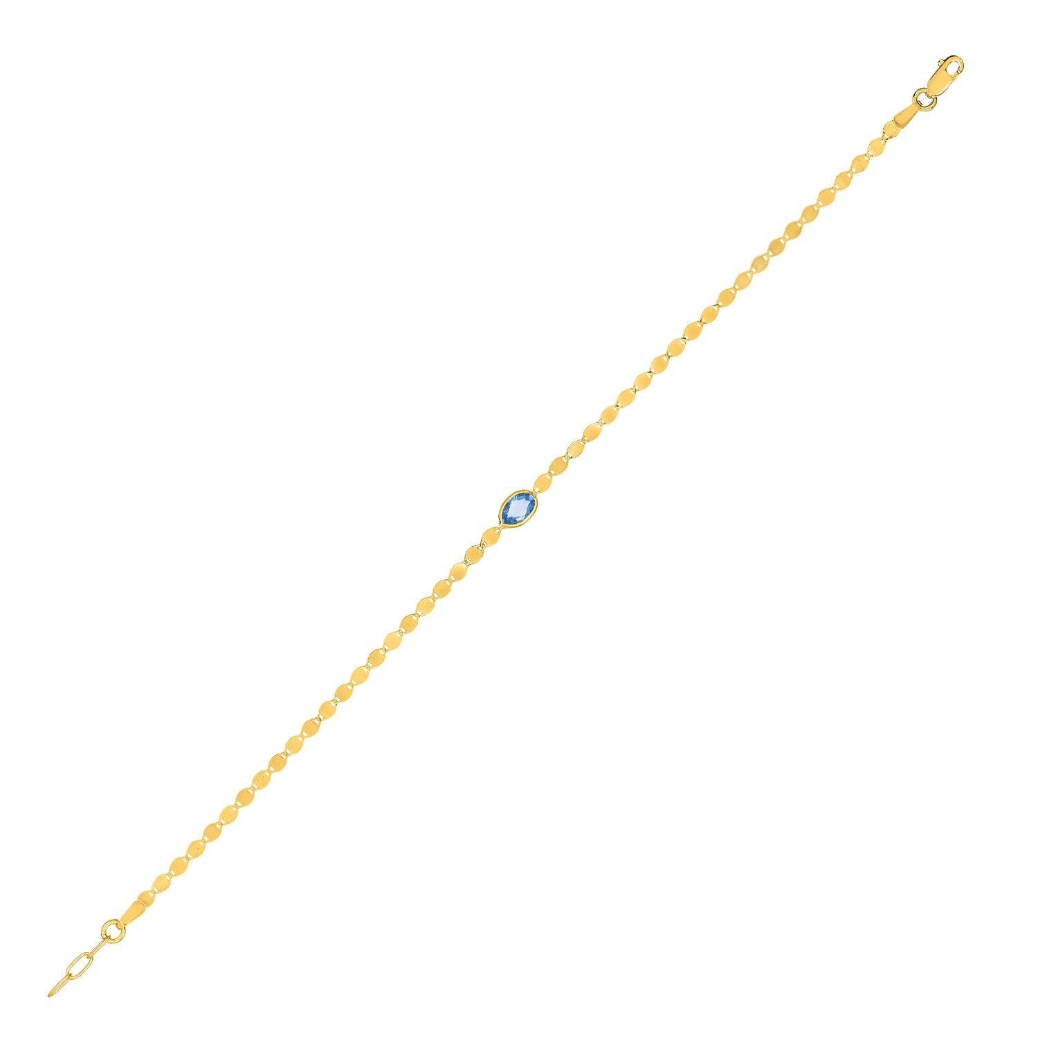 14K Yellow Gold Blue Topaz Mirrored Chain Bracelet (2.20 mm)