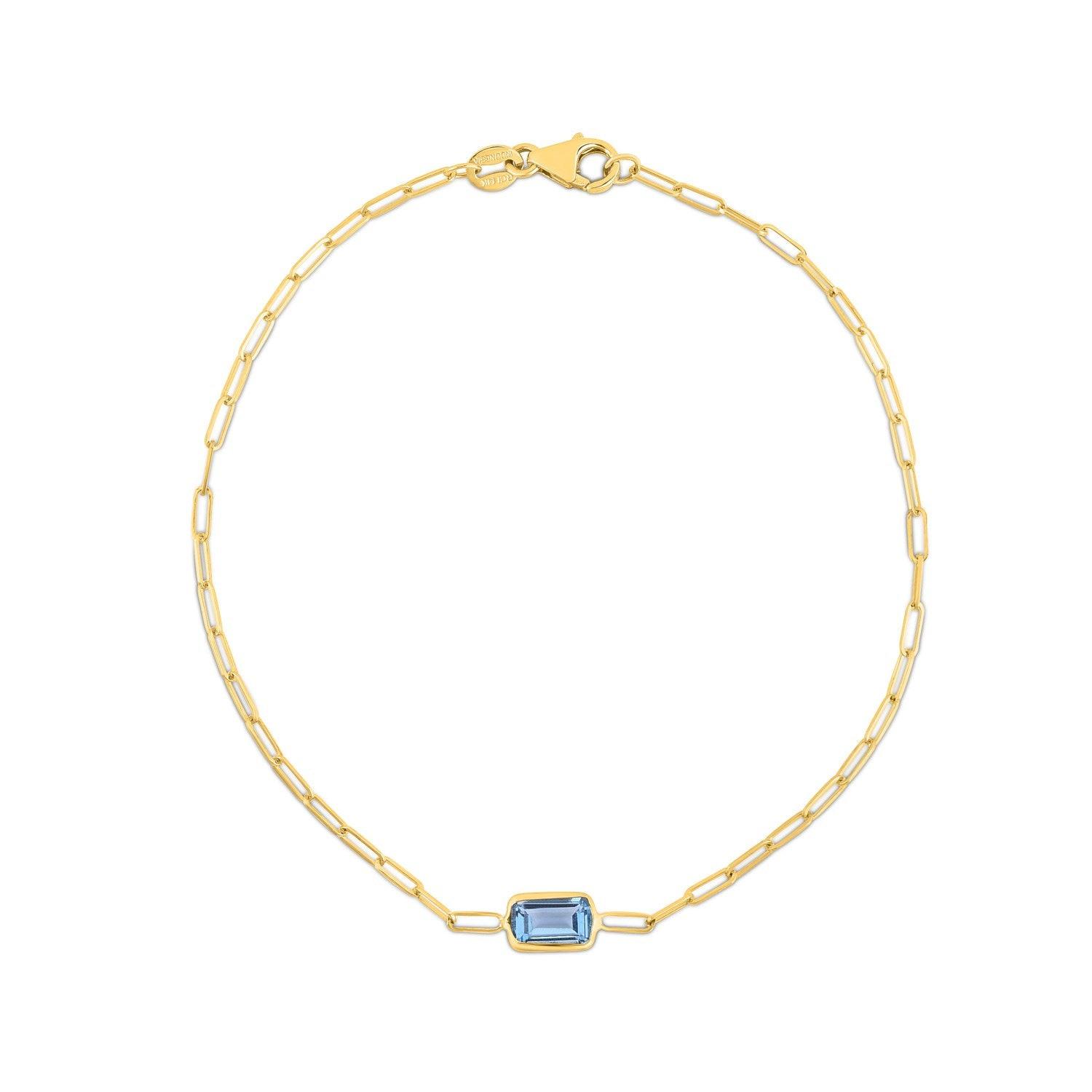 14K Yellow Gold Blue Topaz Paperclip Bracelet (1.50 mm)