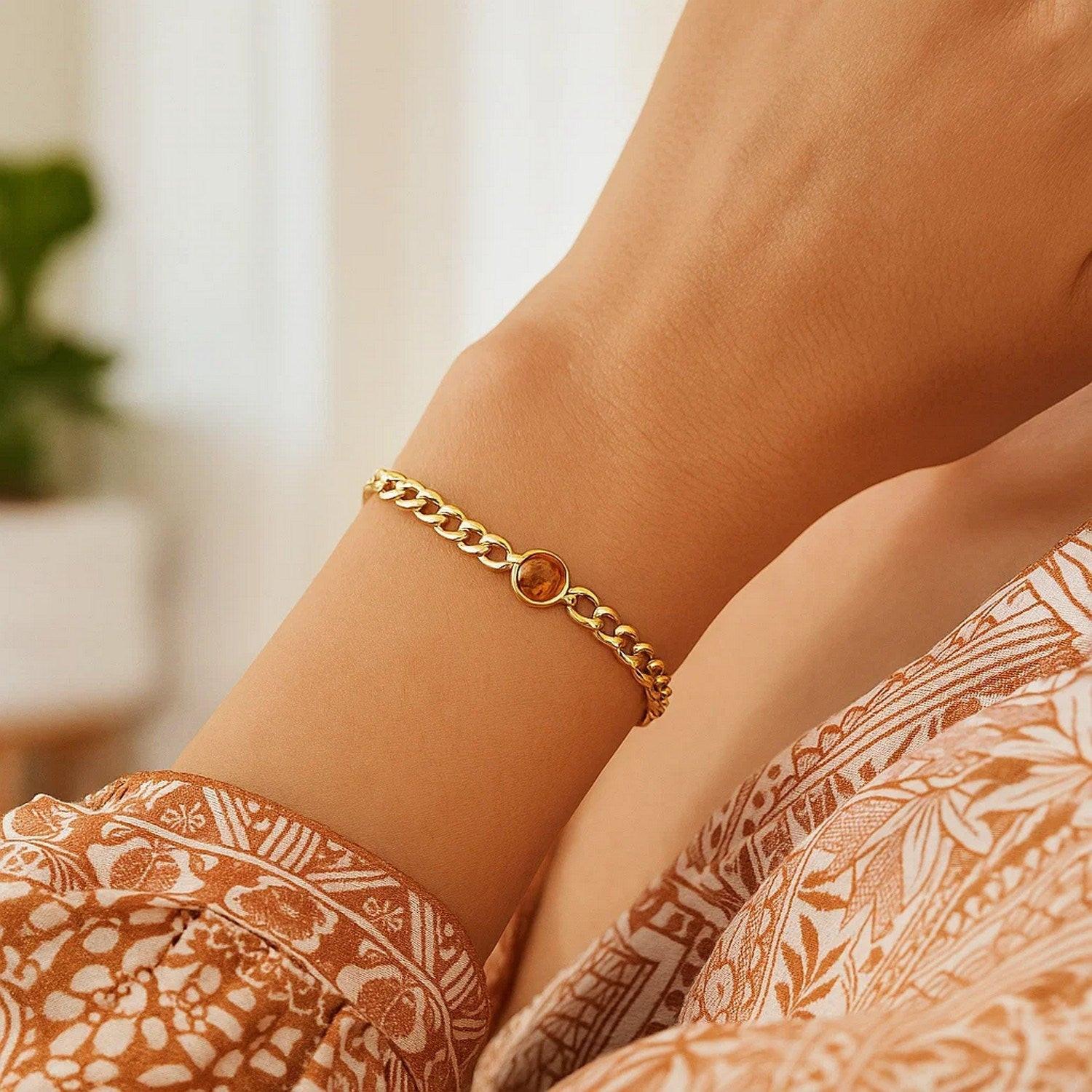 14K Yellow Gold Citrine Curb Chain Bracelet (3.60 mm)