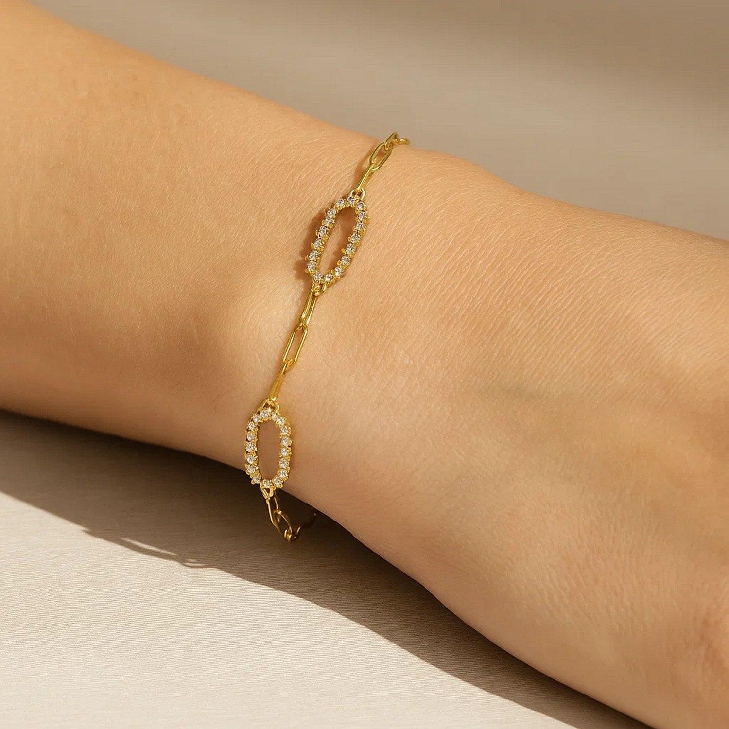14K Yellow Gold Diamon Oro Paperclip Bracelet