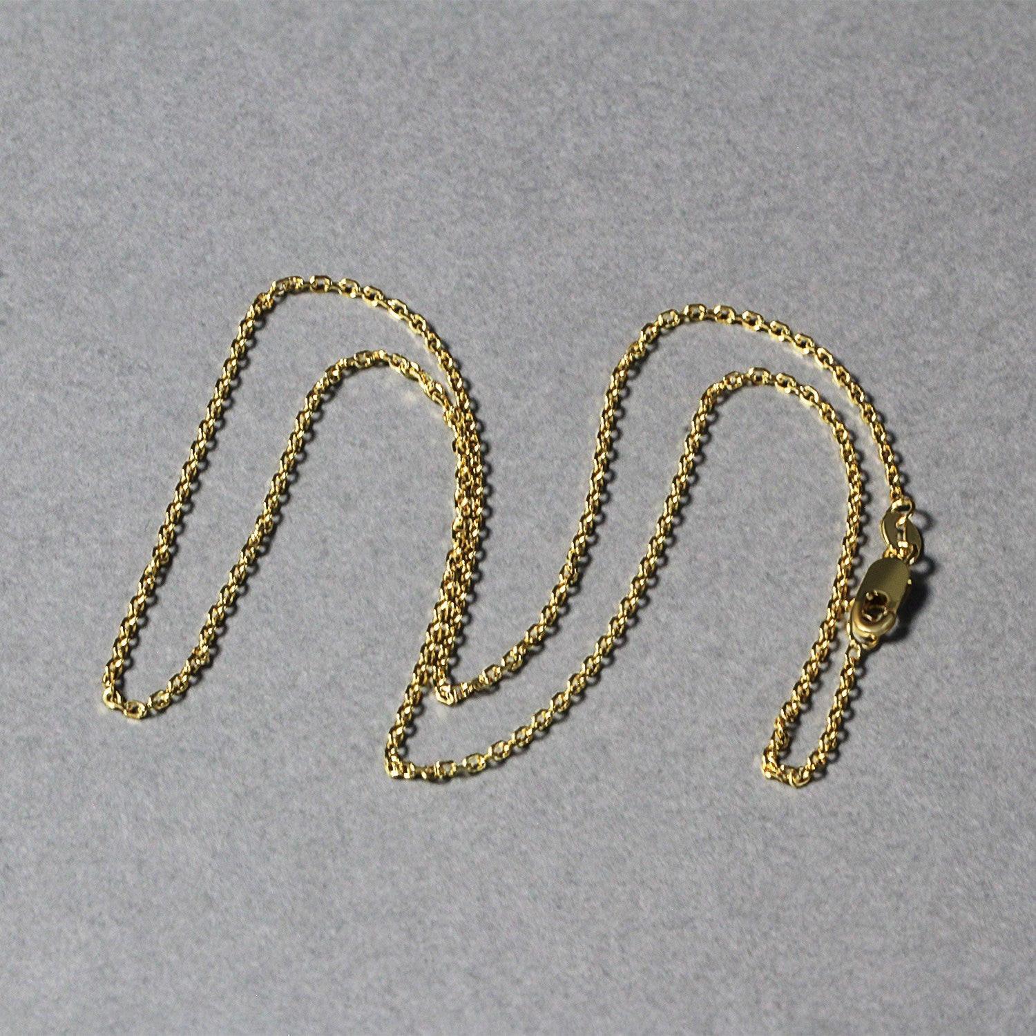 This diamond cut cable link chain comes in 14k yellow gold and has a width of 1.30 millimeters.