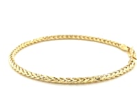 This diamond cut round franco bracelet chain comes in 14k yellow gold and has a width of 2.7 millimeters. Secured with a lobster clasp.