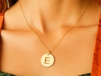 14K Yellow Gold Disc Initial E Pendant