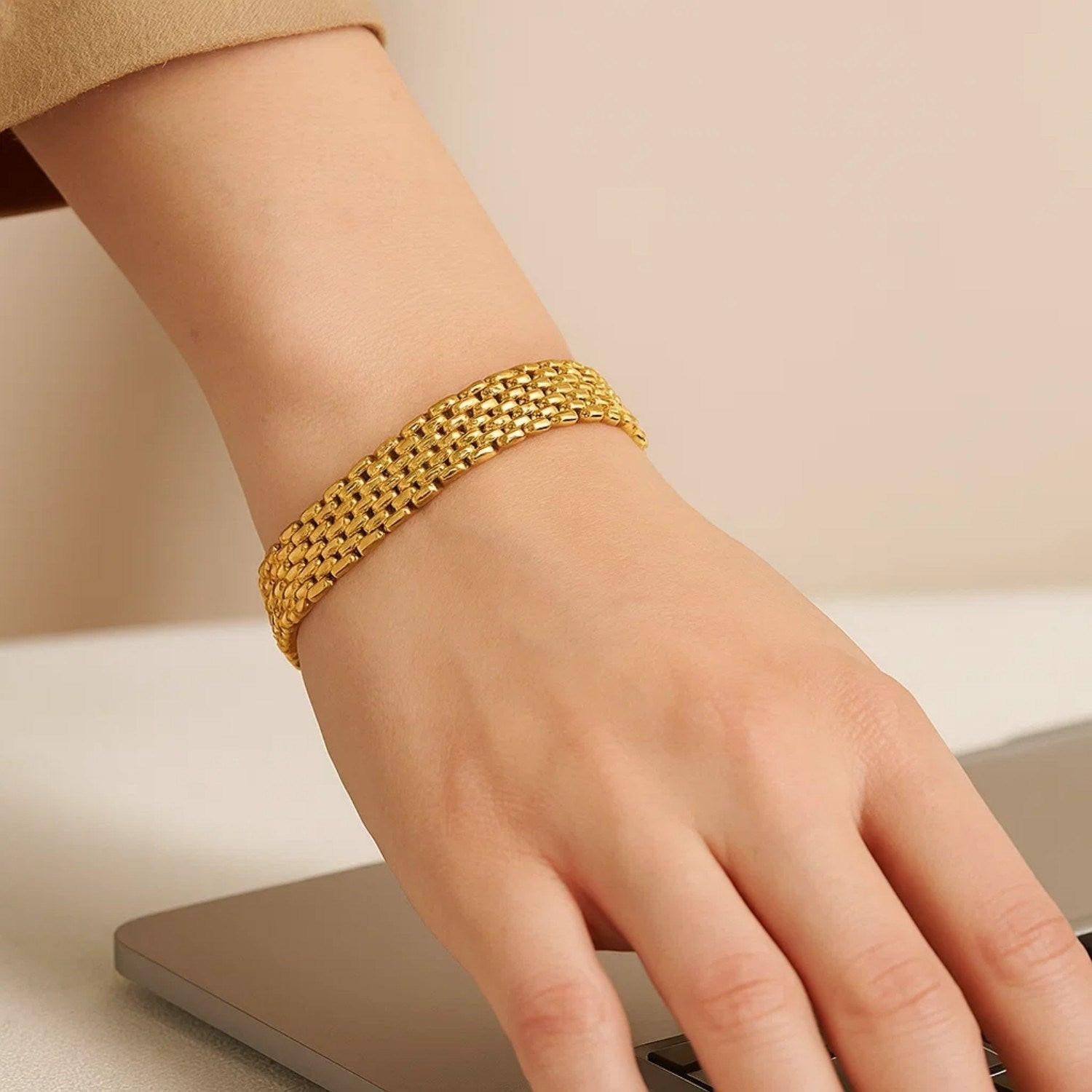 14k Yellow Gold Flexible Panther Line Bracelet (9.00 mm)