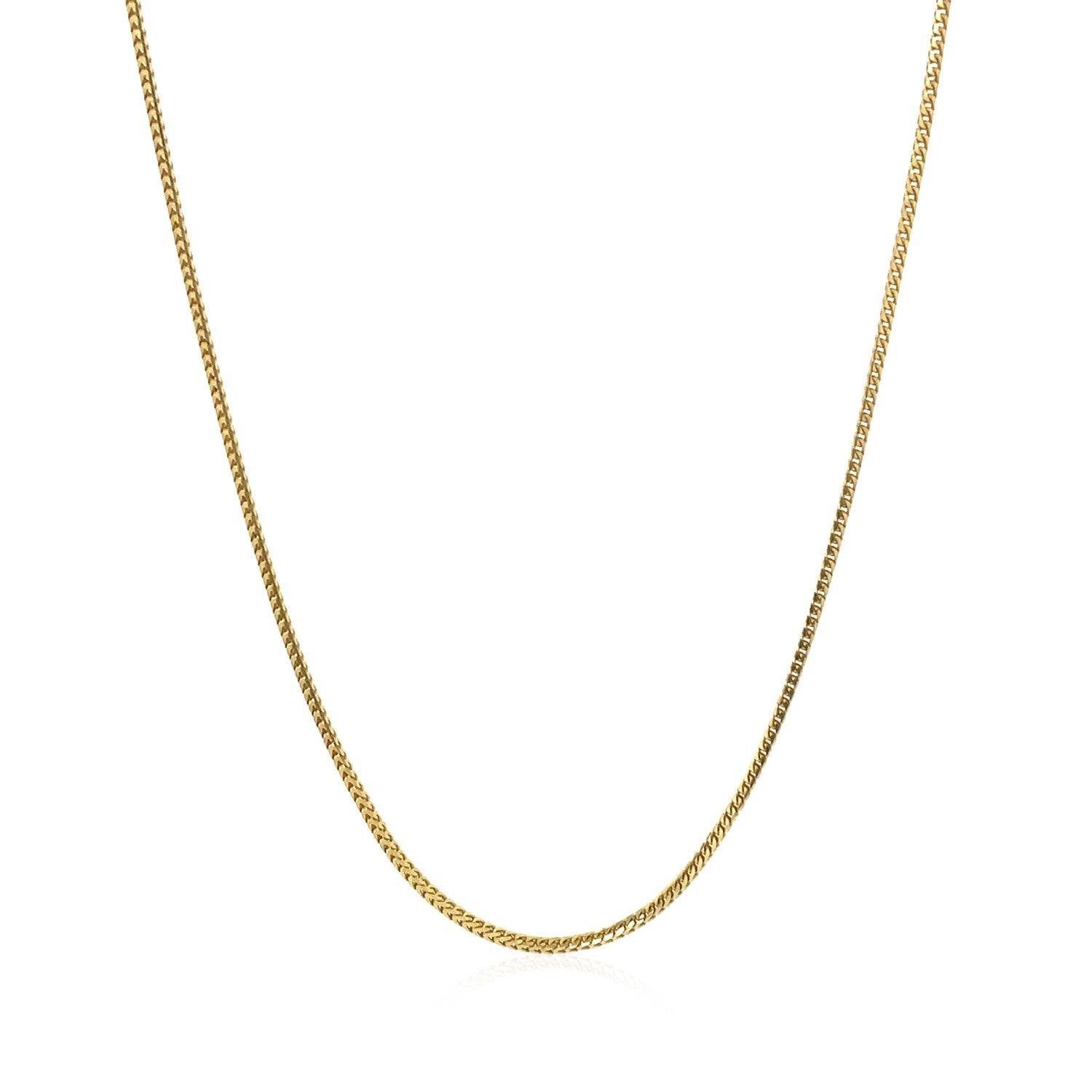 This franco chain comes in 14k yellow gold and has a width of 0.90 millimeters.