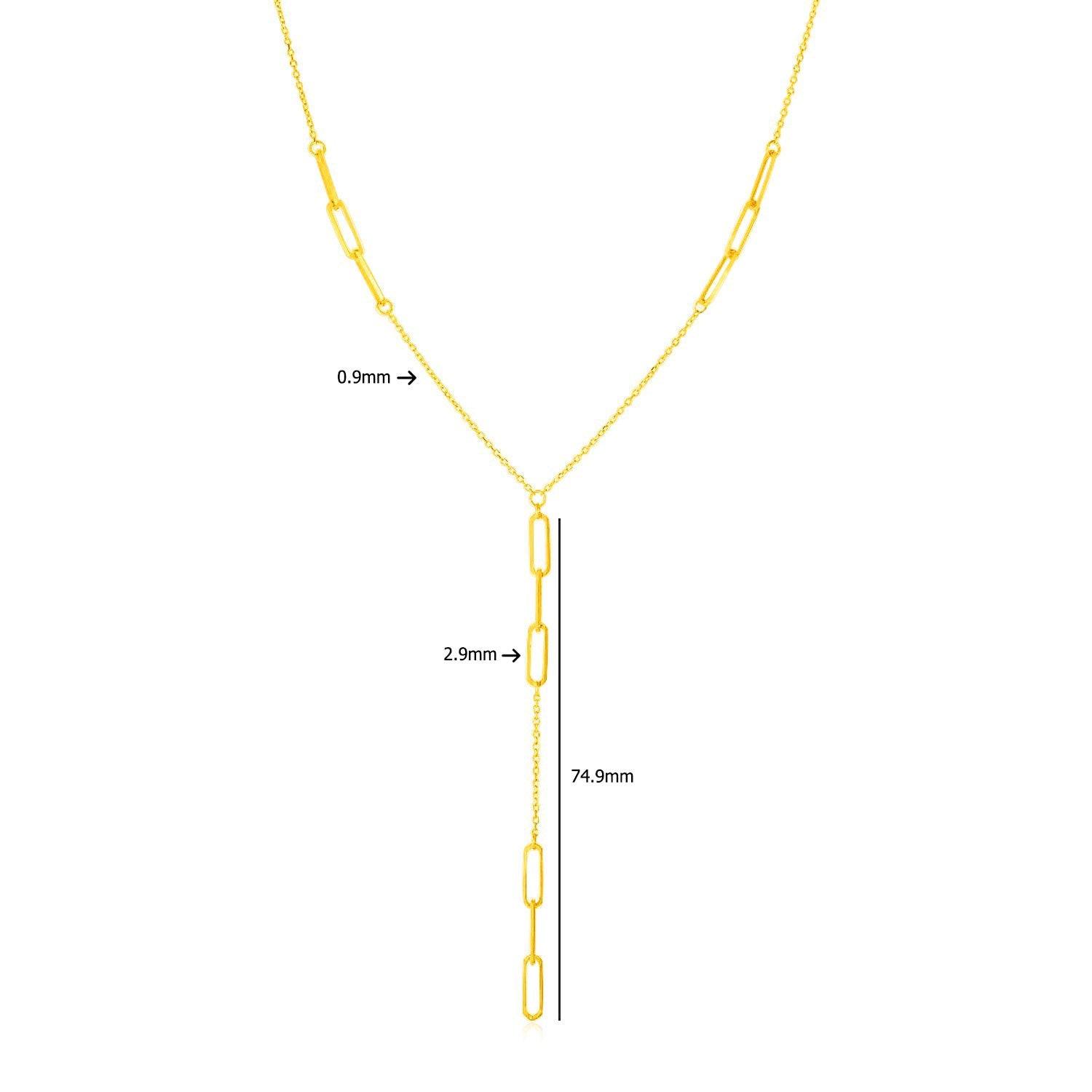 14K Yellow Gold Lariat Necklace with Paperclip Chain Stations