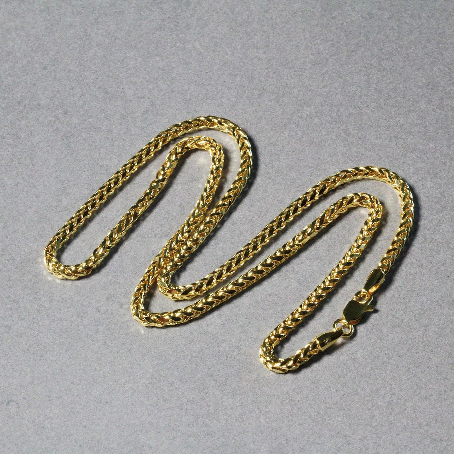 This diamond cut lite round franco chain comes in 14k yellow gold and has a width of 2.70 millimeters.