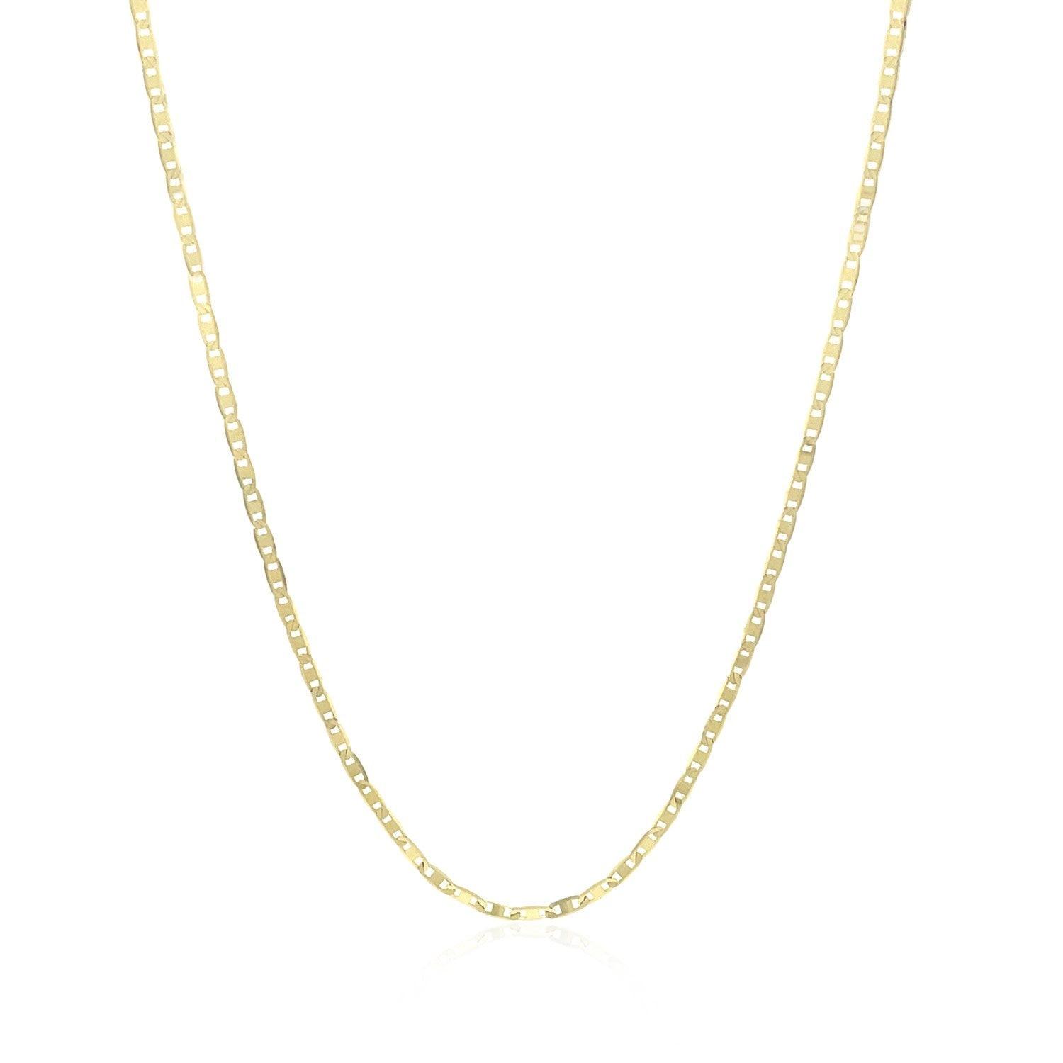 This mariner link chain comes in 14k yellow gold and has a width of 1.20 millimeters.