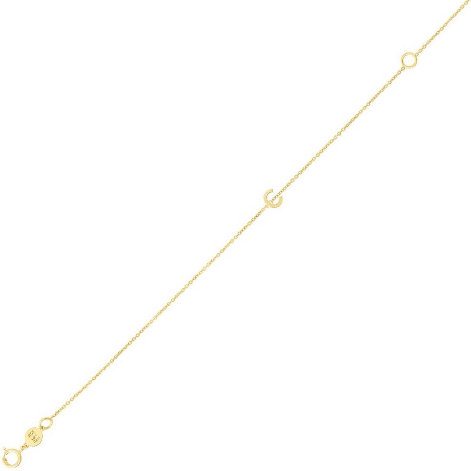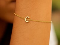 Crafted in radiant 14K yellow gold, this mini initial C bracelet features a petite, polished letter charm centered on a delicate chain, offering a refined and personal touch. Its warm golden shine and minimalist design make it perfect for everyday wear, whether worn alone for subtle elegance or layered to create a meaningful, customized bracelet stack.