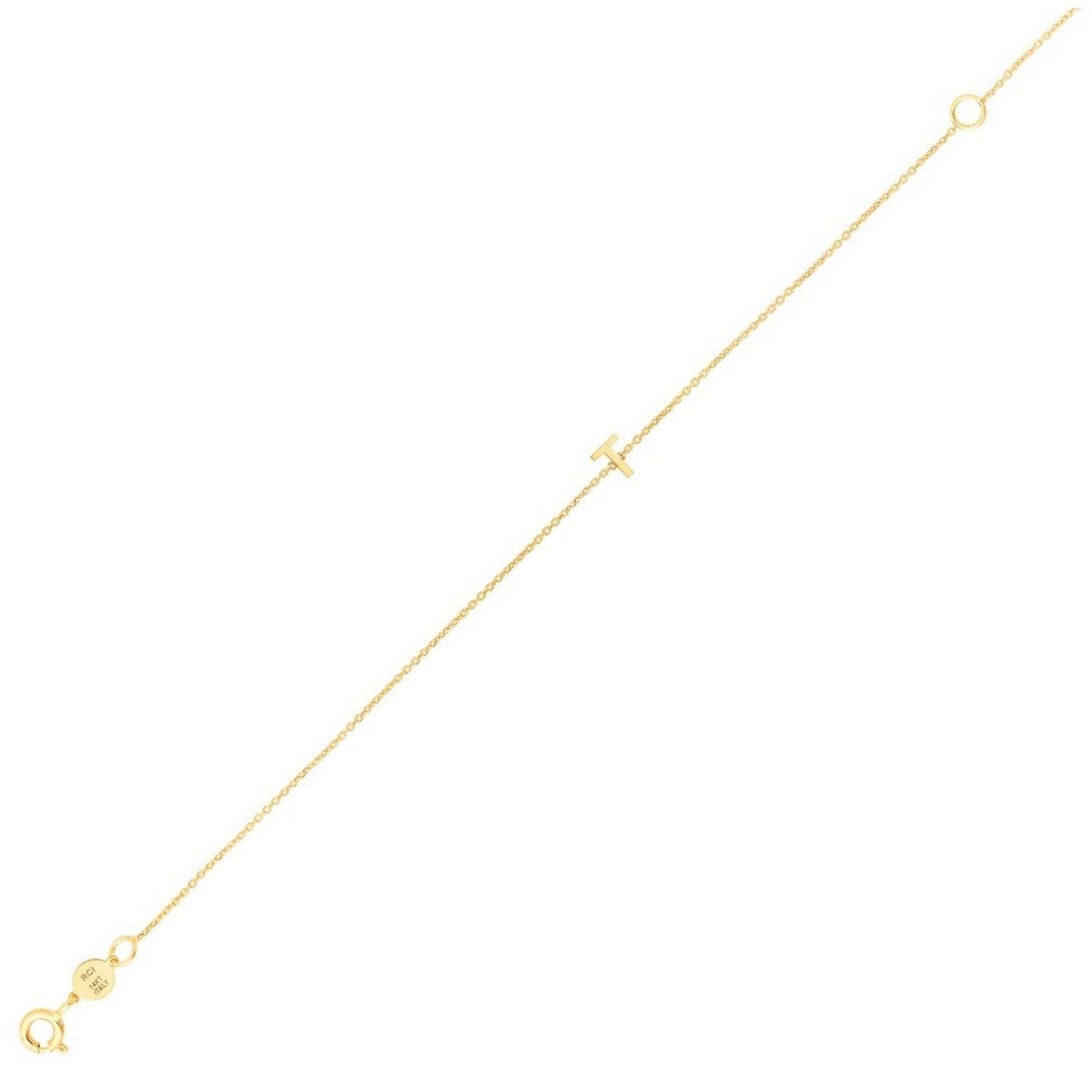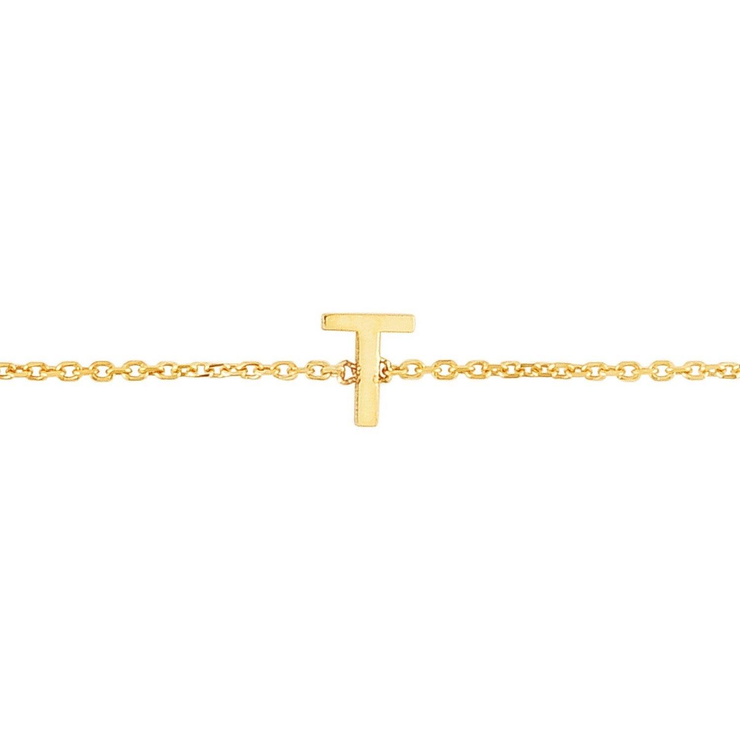 14K Yellow Gold Mini Initial T Bracelet
