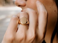 14K Yellow Gold Oval Signet Ring crafted in solid 14K yellow gold with a polished oval top. The smooth, tapered band provides a classic, refined look suitable for everyday wear or personal engraving.