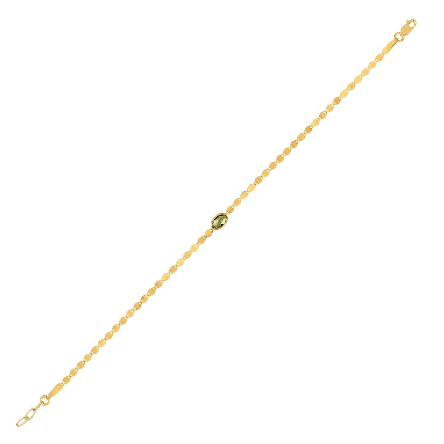 14K Yellow Gold Peridot Mirrored Chain Bracelet (2.20 mm)