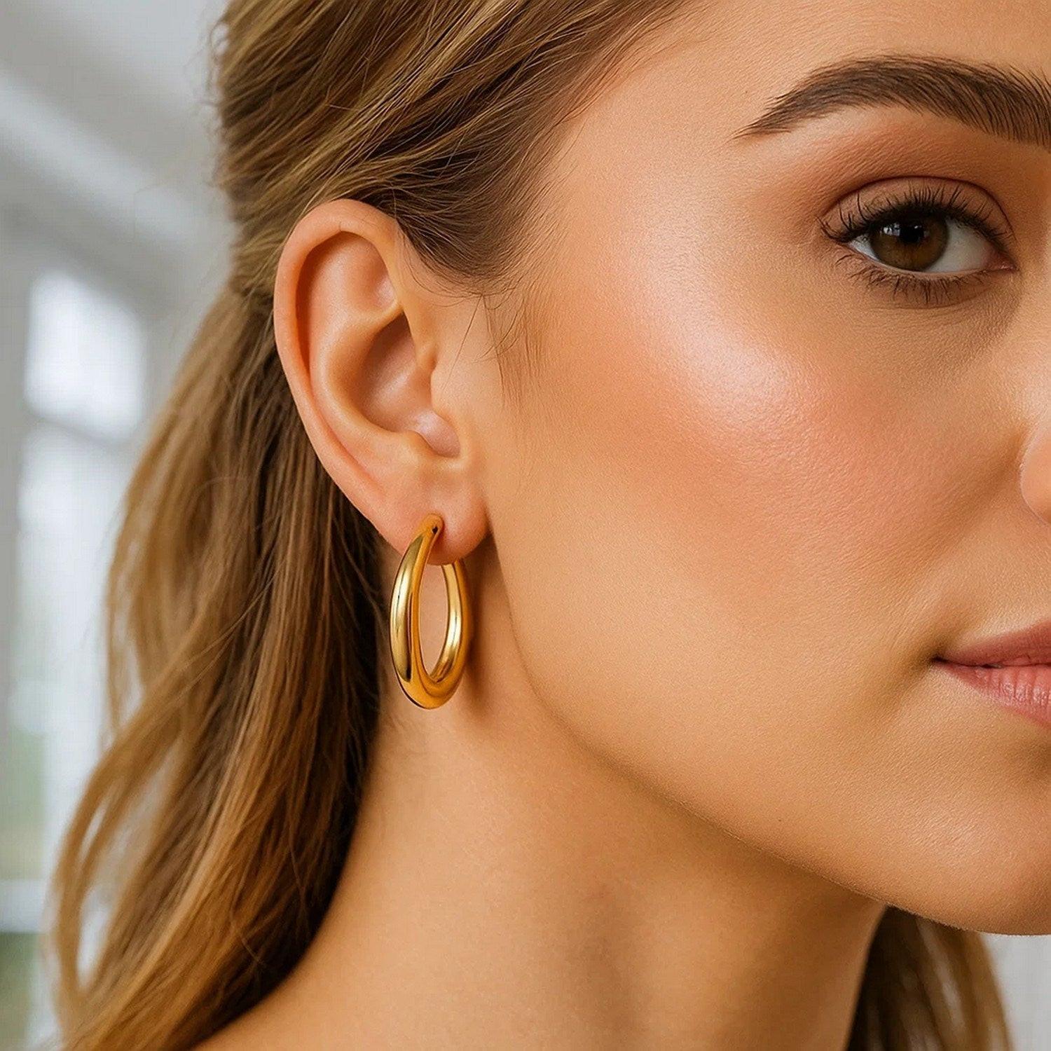 14K Yellow Gold Round Back to Back Hoop Earrings