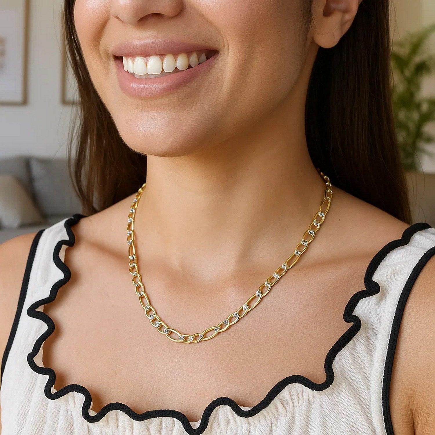 14K Yellow Gold Solid Pave Figaro Chain (3.80 mm)