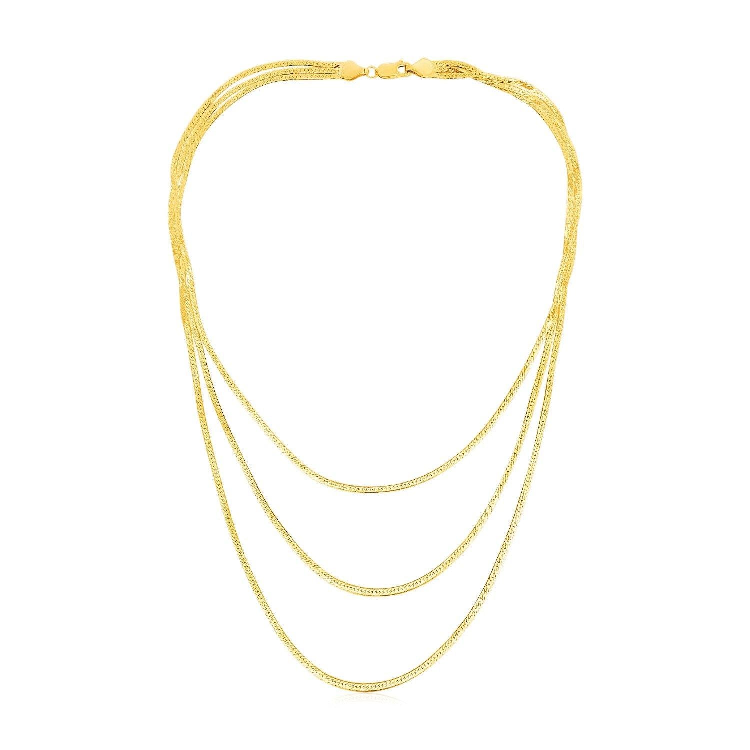14k Yellow Gold Three Strand Herringbone Chain Necklace