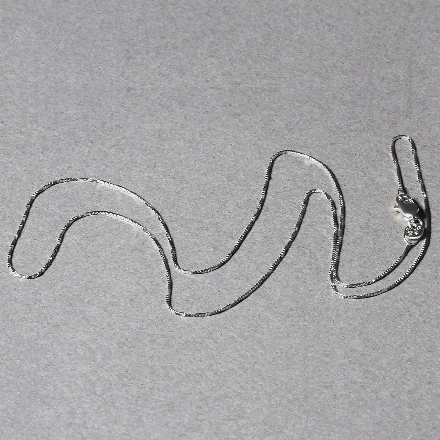 This box chain comes in 18k white gold and has a width of 0.60 millimeters.