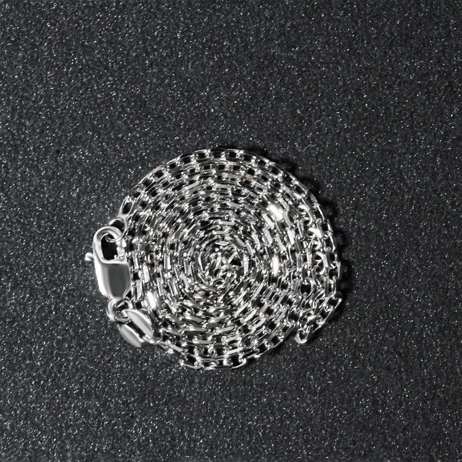 This diamond cut cable link chain comes in 18k white gold and has a width of 1.9 millimeters.