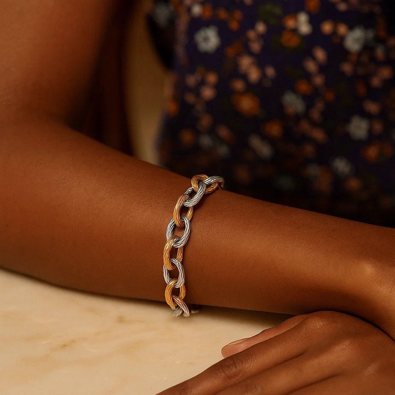 18k Yellow Gold and Sterling Silver Rhodium Plated Diamond Cut Chain Bracelet