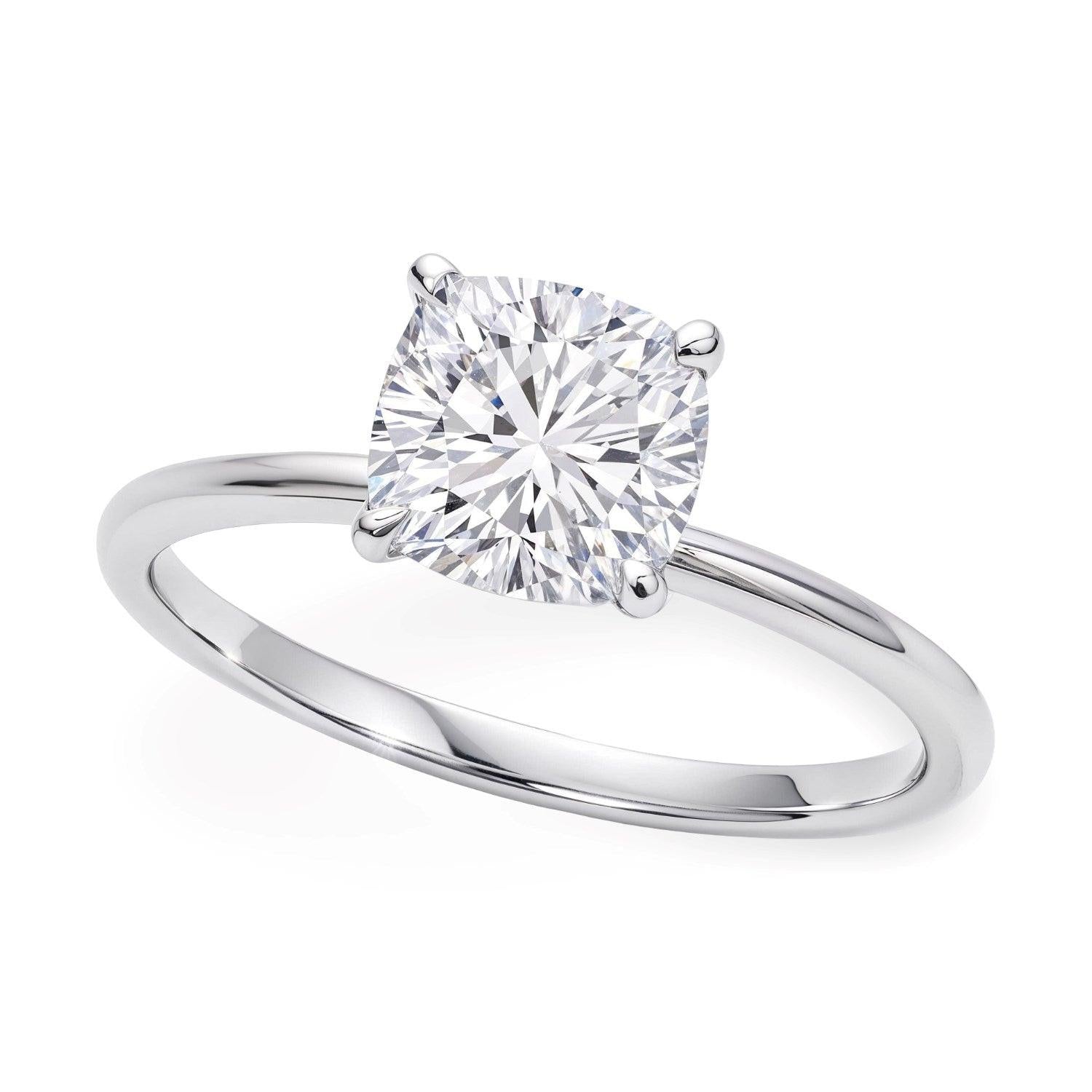 2 Carat Cushion Lab Grown IGI G/VS1 Diamond Solitaire Ring in 14K White Gold