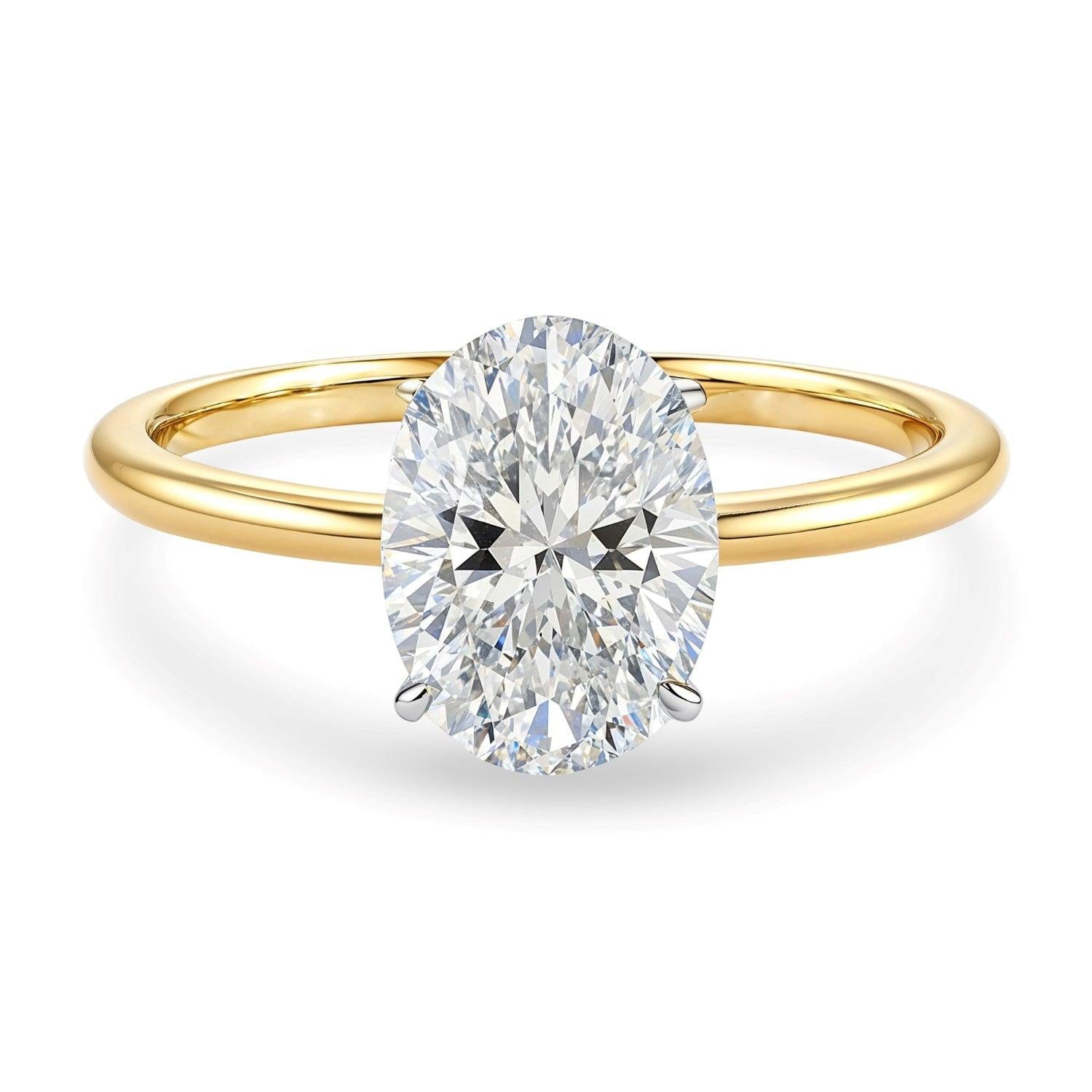 2 Carat Oval Lab Grown IGI G/VS1 Diamond Solitaire Ring in 10K Yellow Gold