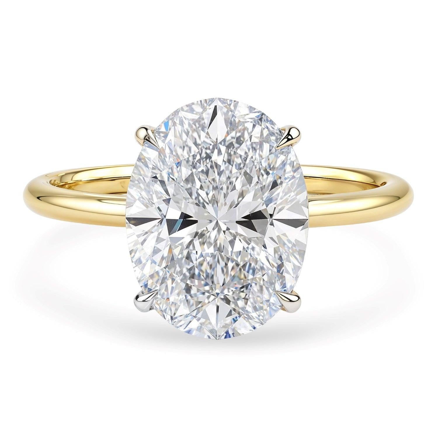 3 Carat Oval Lab Grown IGI G/VS1 Diamond Solitaire Ring in 10K Yellow Gold